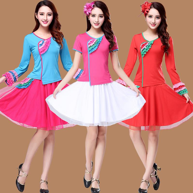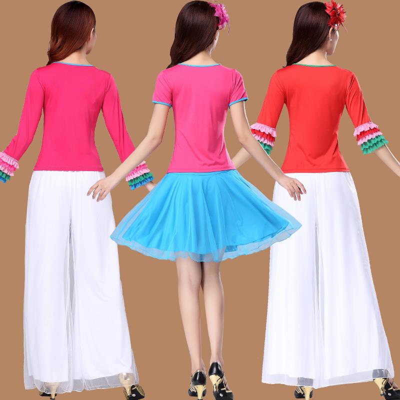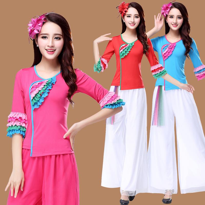特卖新款中老年广场舞服装民族风网纱裙裤舞蹈服套装女古典扇子舞