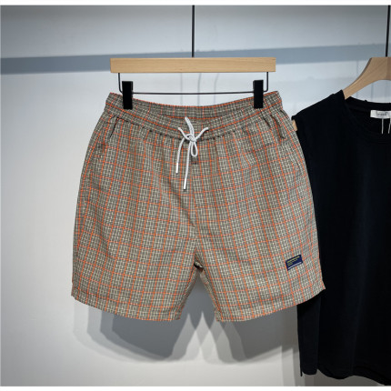 何尚 原创潮牌复古格子休闲短裤男薄ins潮流美式系带纯棉五分裤子