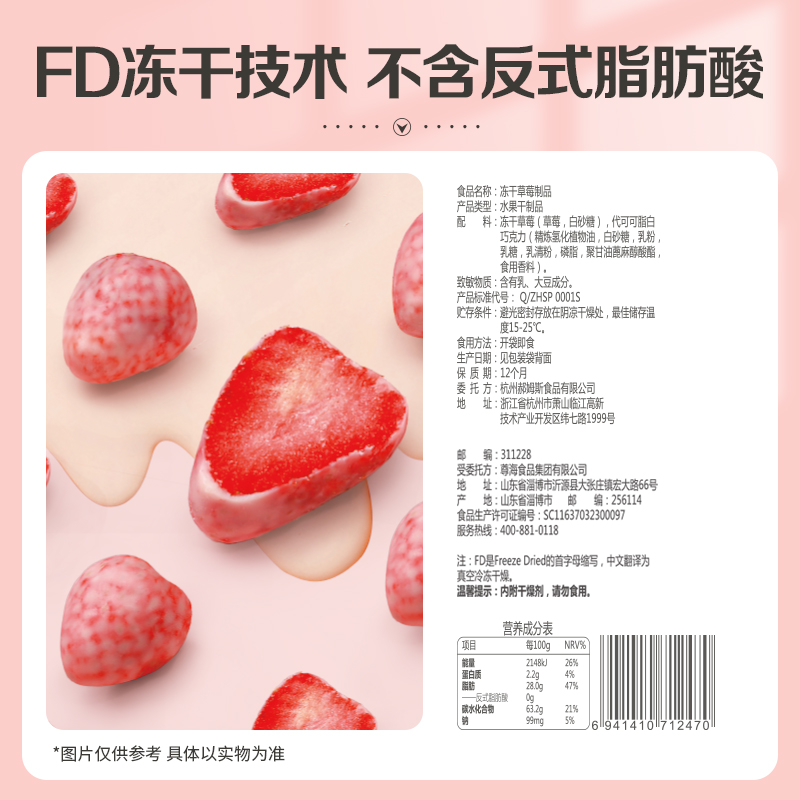 百草味冻干草莓干脆40g巧克力水果干网红小吃儿童零食办公室即食
