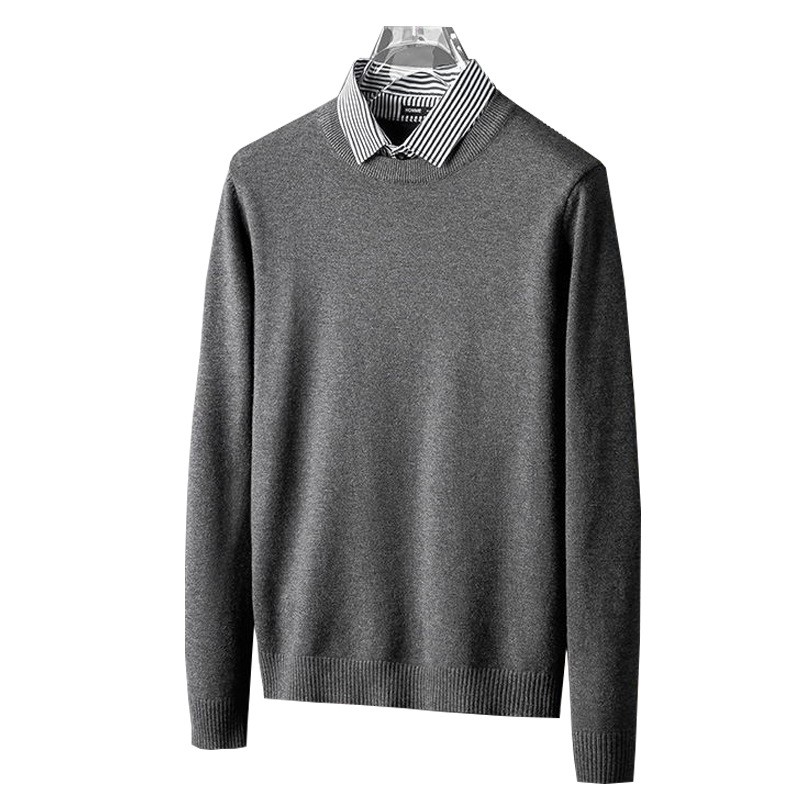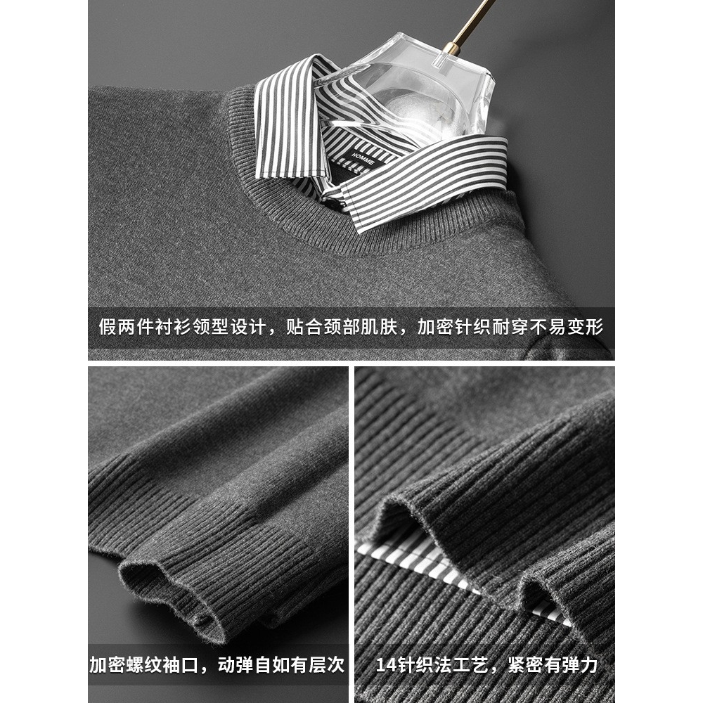 春秋季假两件套男士衬衫领纯针织衫潮流针织衫男装毛衣长袖打AA44