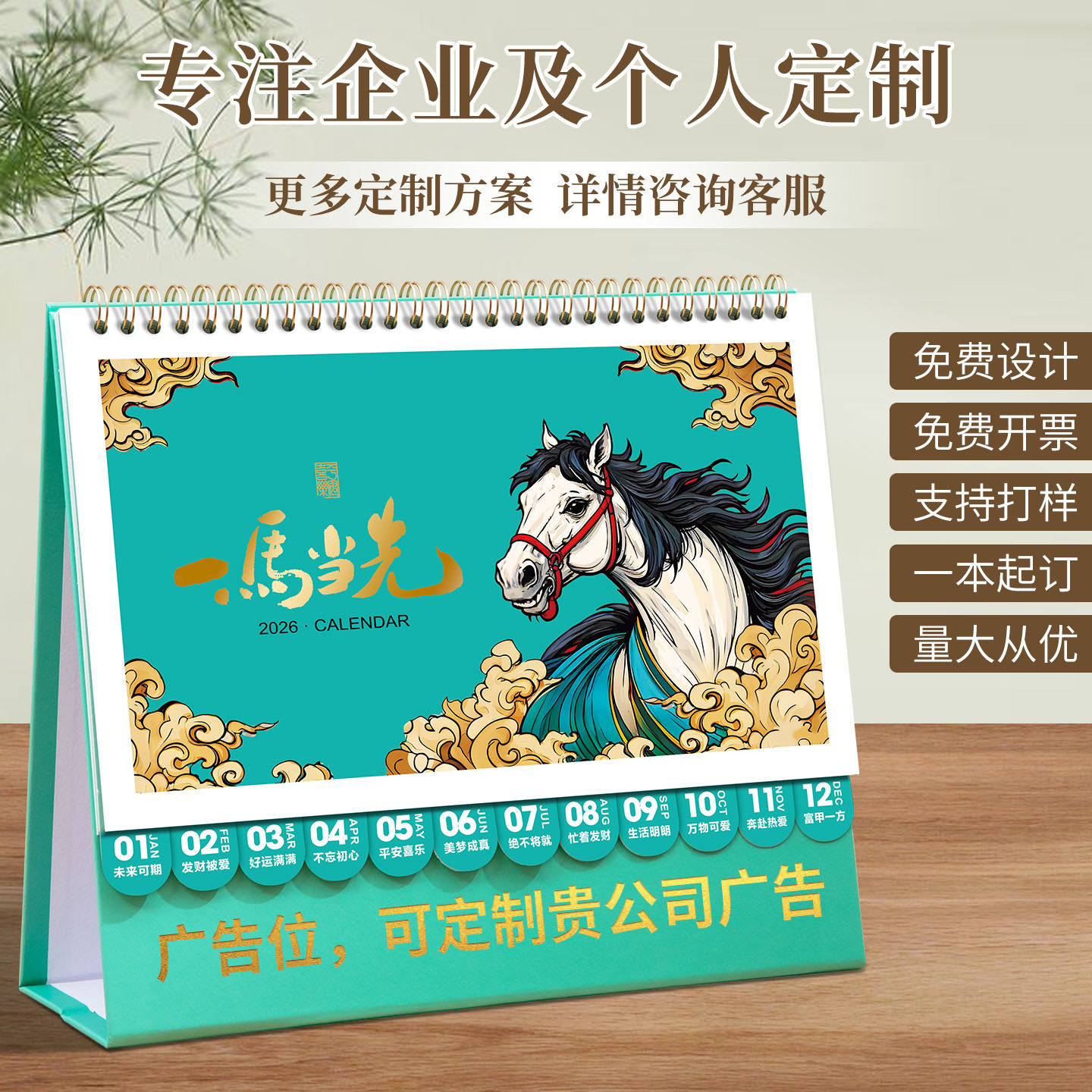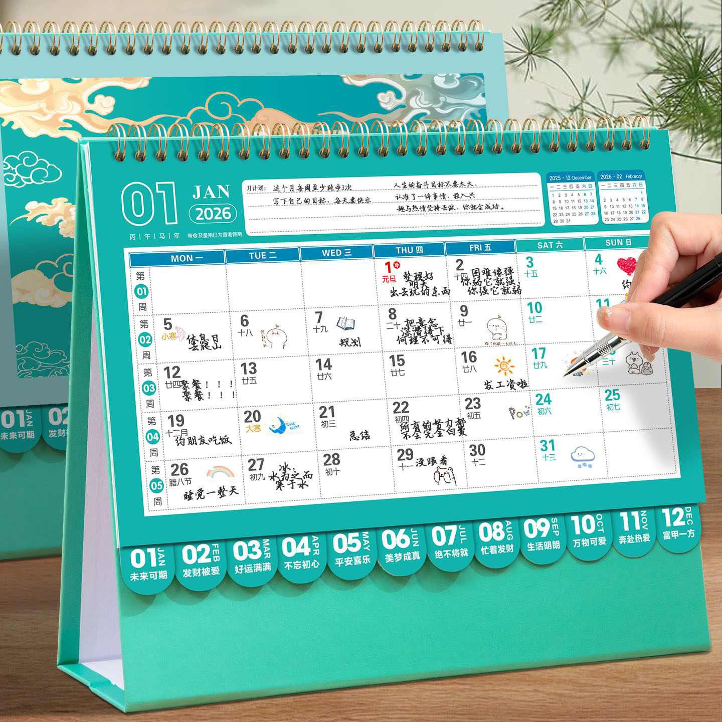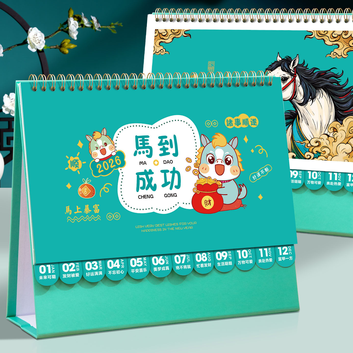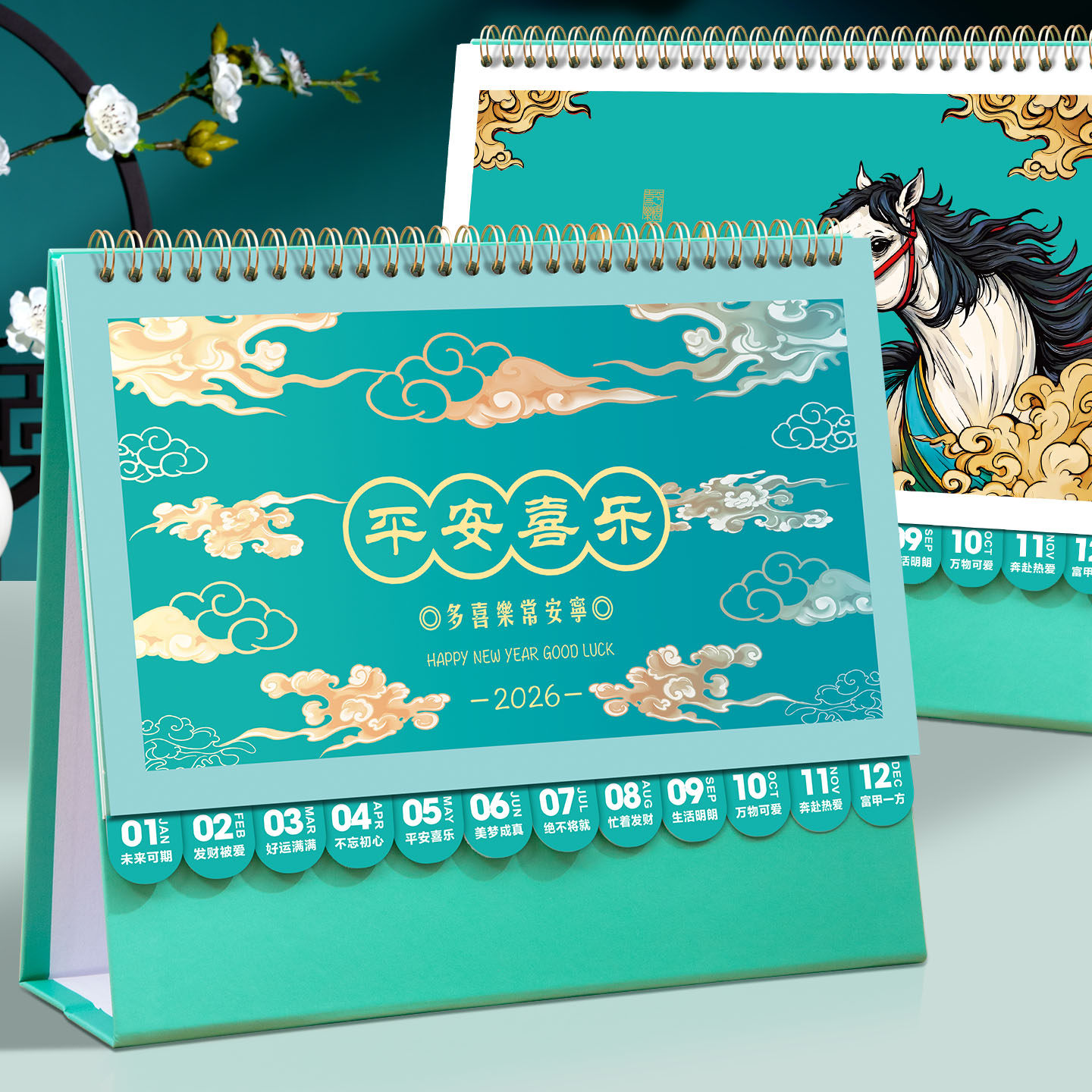 2026年新款台历马年月历新中式简约索引日历精致桌面摆件商务办公打卡翻页大格子记事本企业定制广告印刷logo