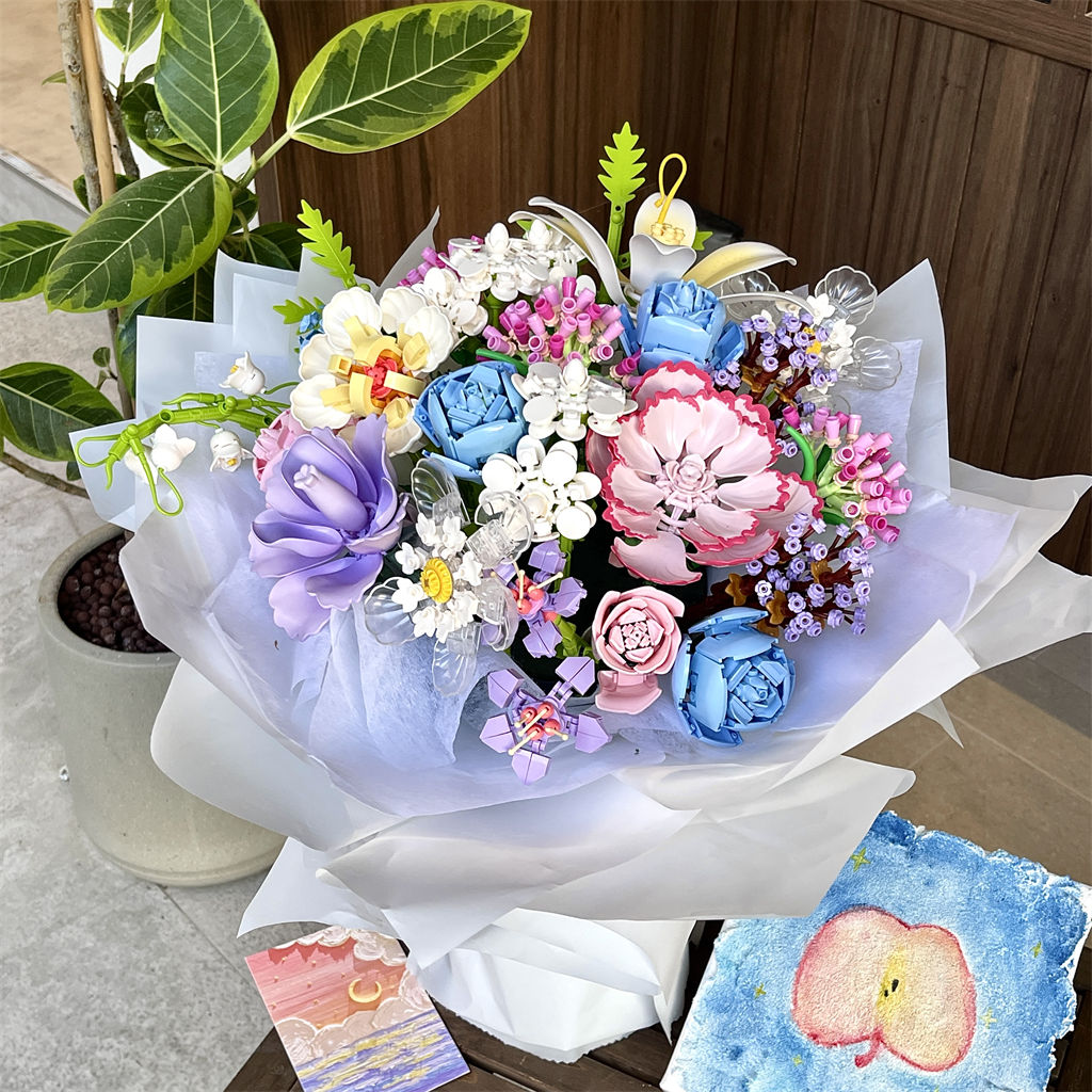 多巴胺积木花束拼装永生花朵手工DIY适用乐高颜值送闺蜜生日礼物