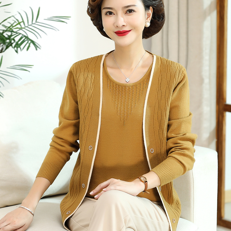 妈妈秋装气质假两件长袖T恤针织衫40岁50中老年女装春秋洋气上衣
