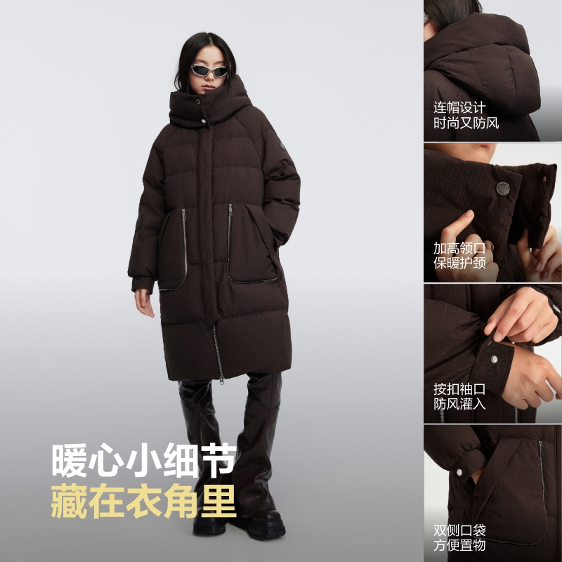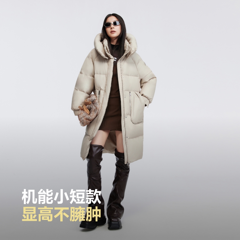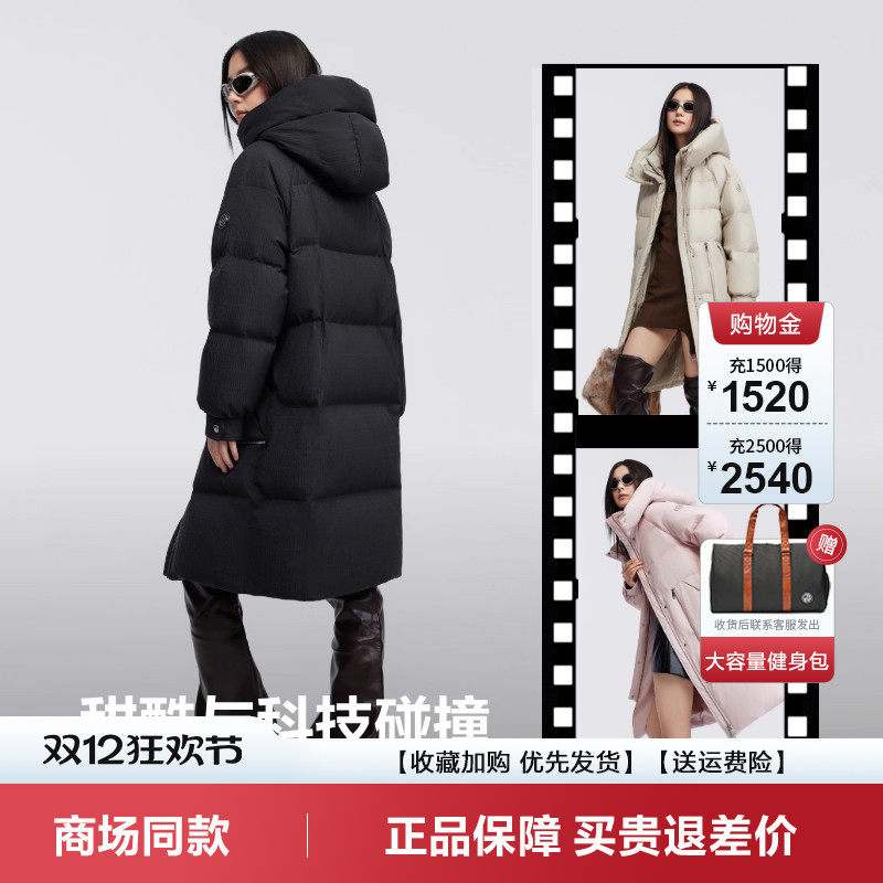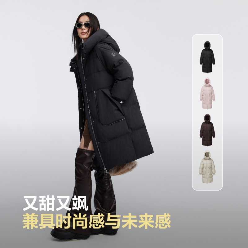波司登羽绒服女冬季爆款中长款外套黑金系列连帽加厚廓形外套