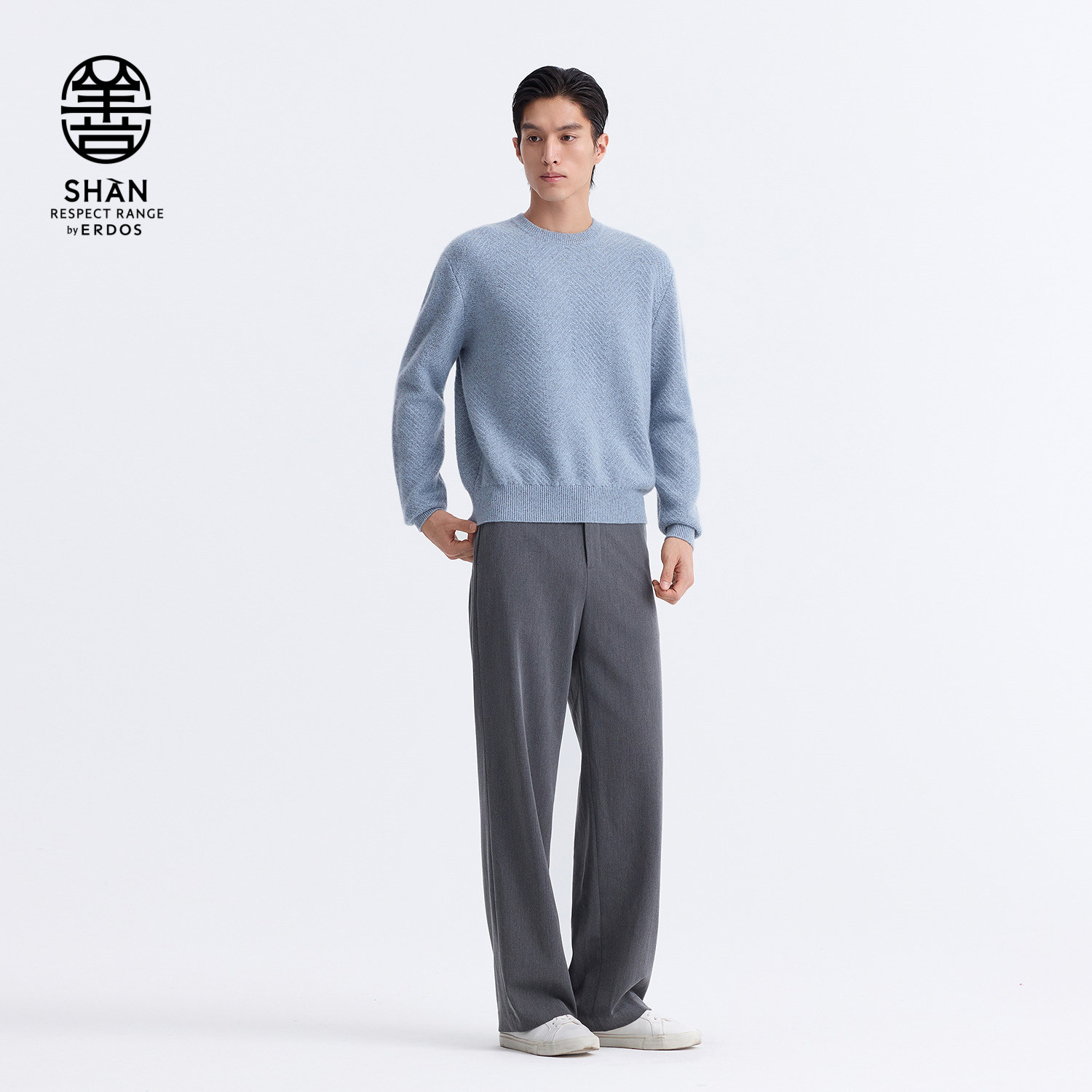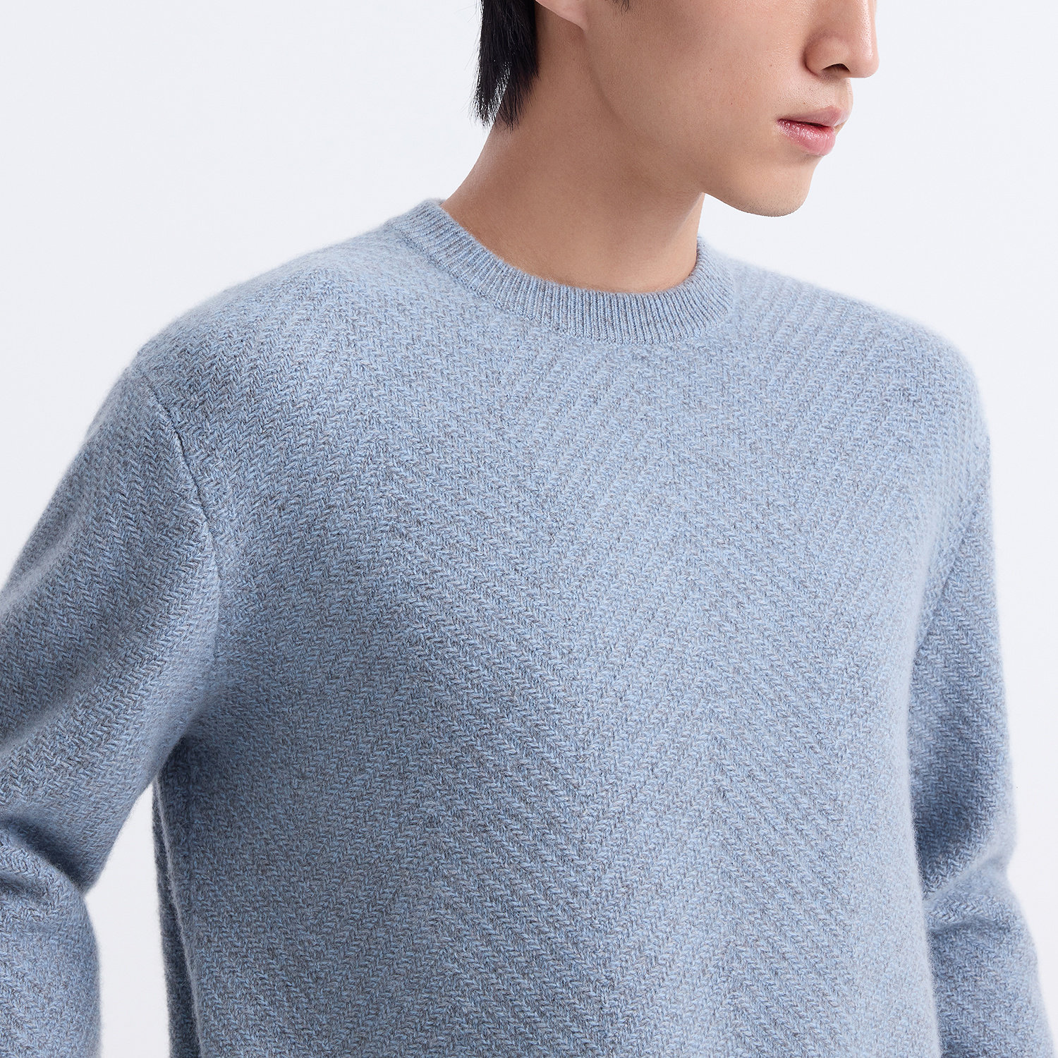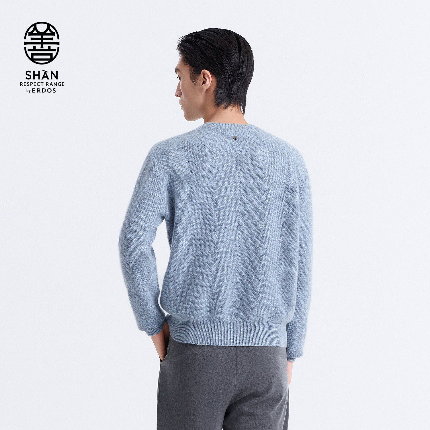 【善系列】ERDOS 男装纯羊绒衫初绒圆领翻花人字纹超弹