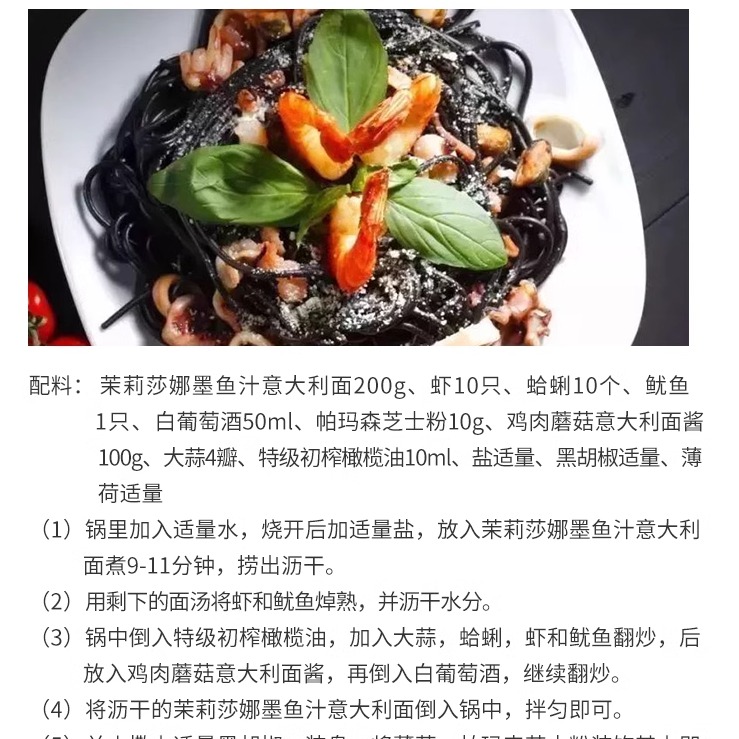 茉莉莎娜麦丽墨鱼汁意大利面条500g 原装进口意面意粉通心粉家用