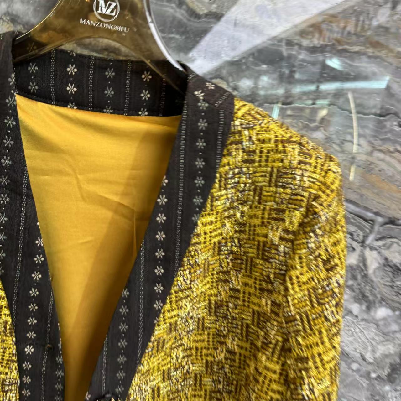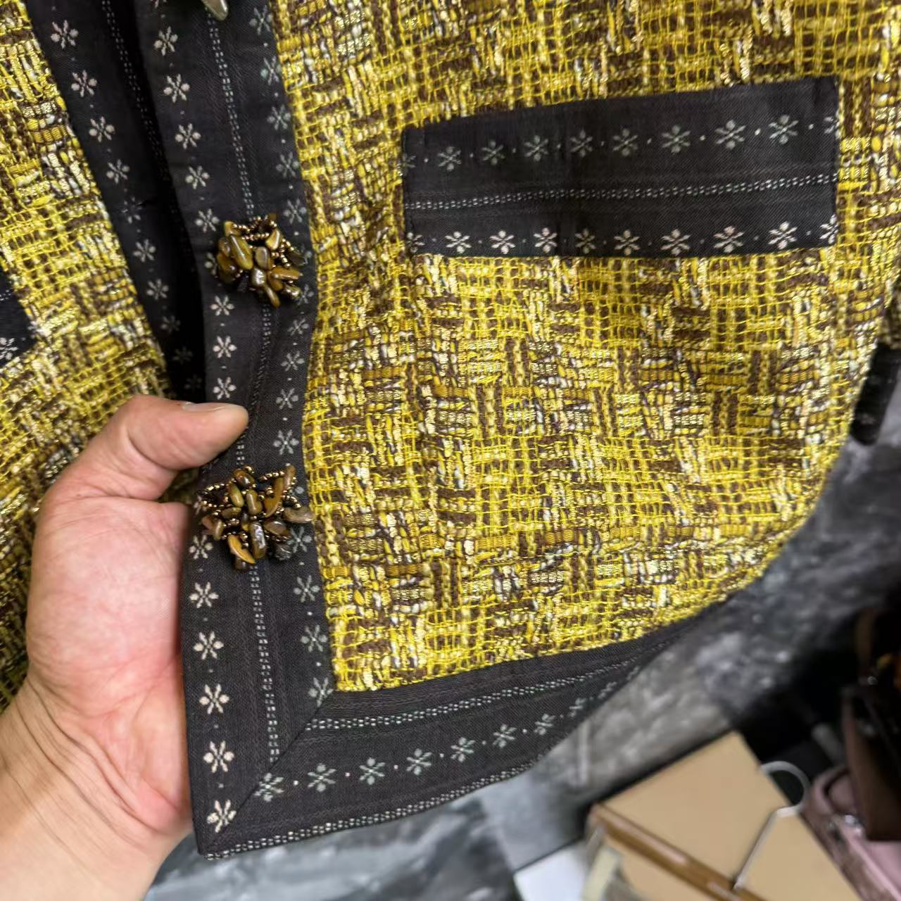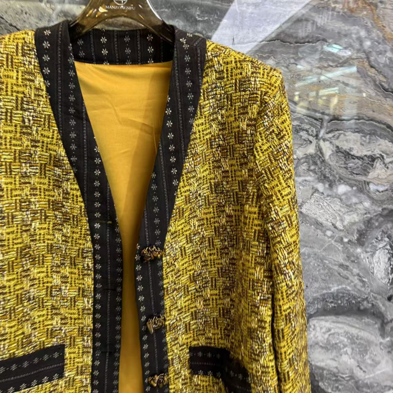 欧洲站2025秋冬新款v领花朵扣复古编织设计气质女士短外套825740