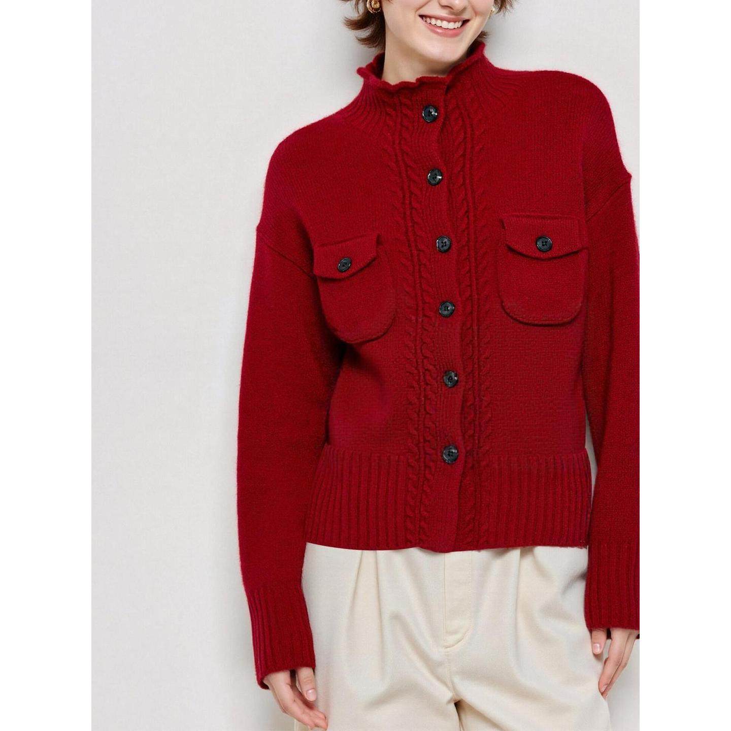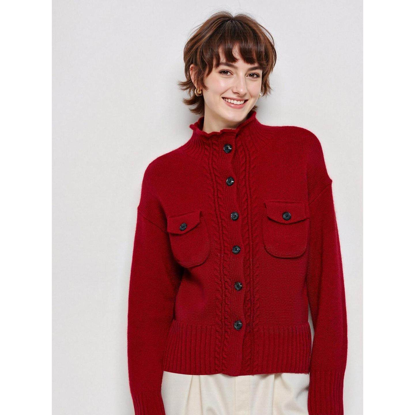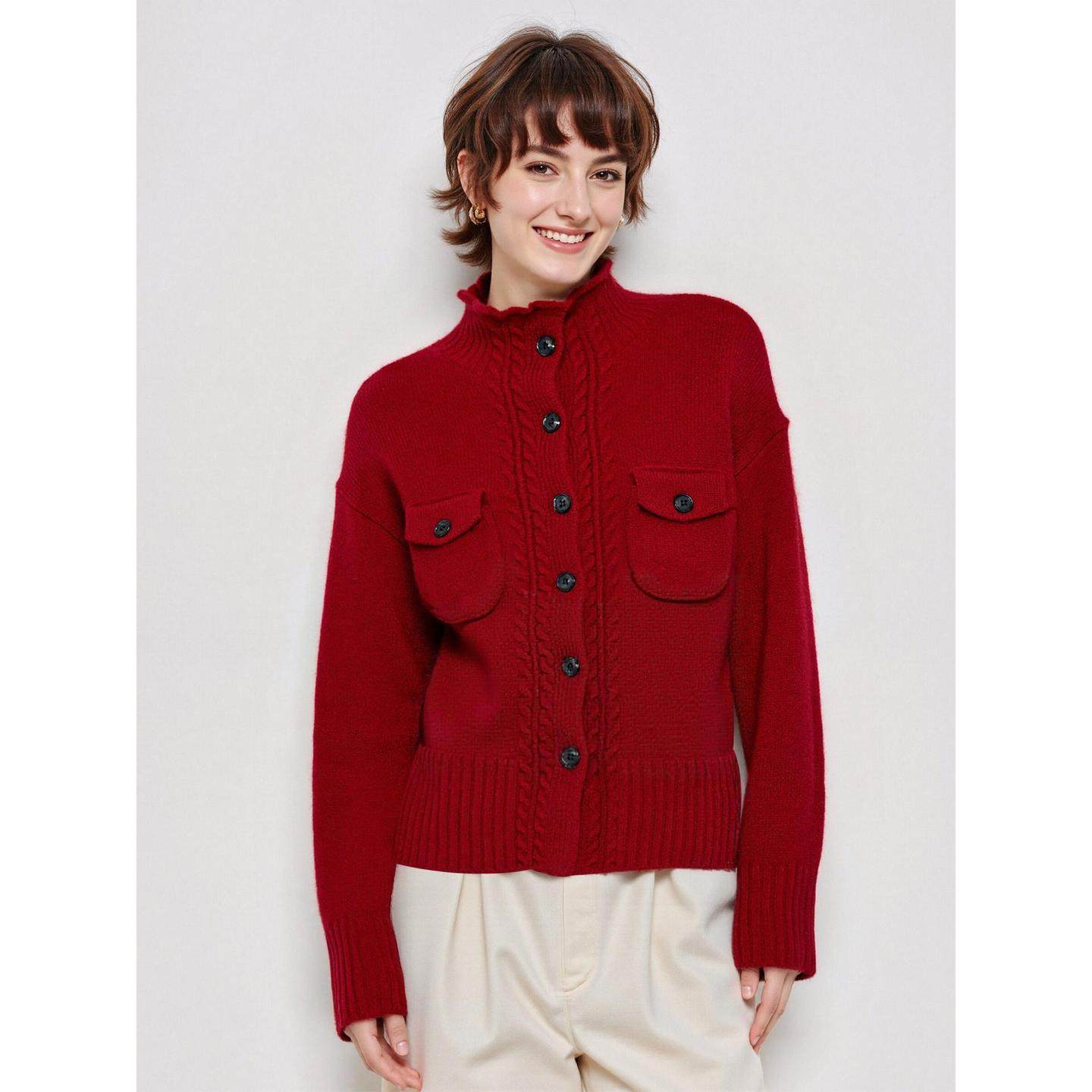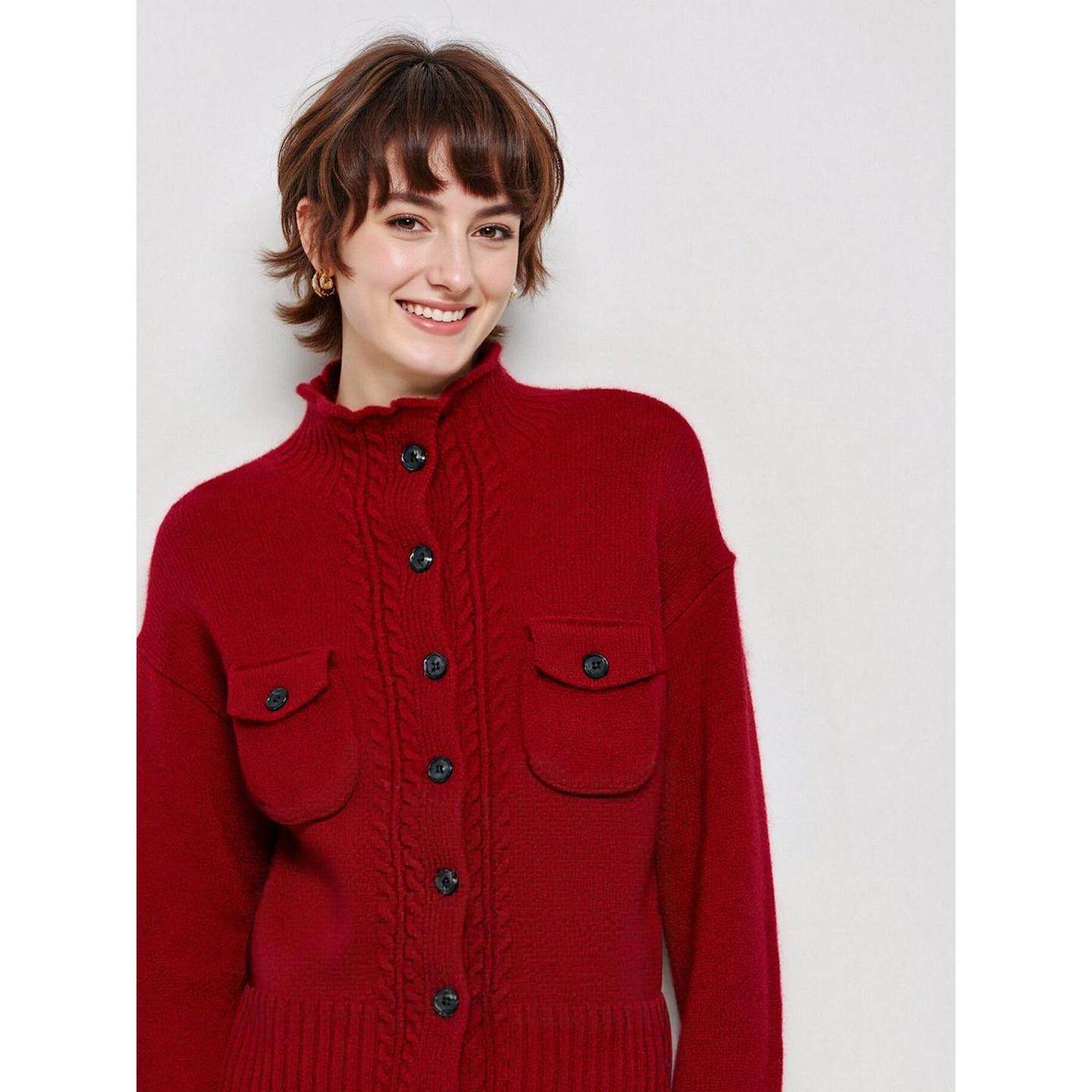 Basic House/百家好100%羊毛新年红立领针织开衫女冬加厚毛衣外套