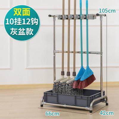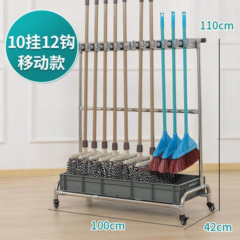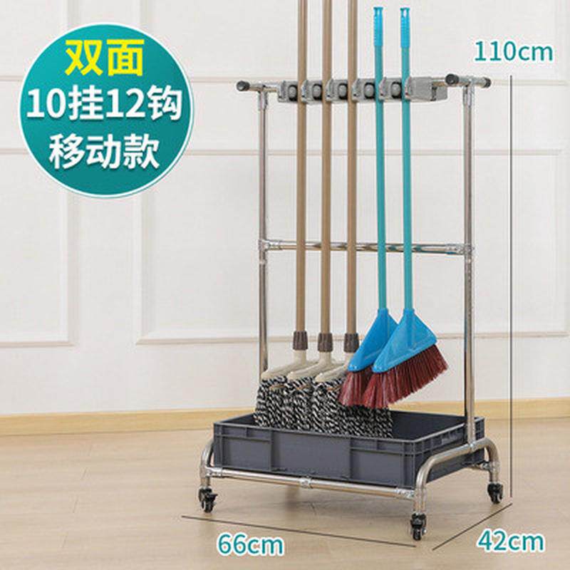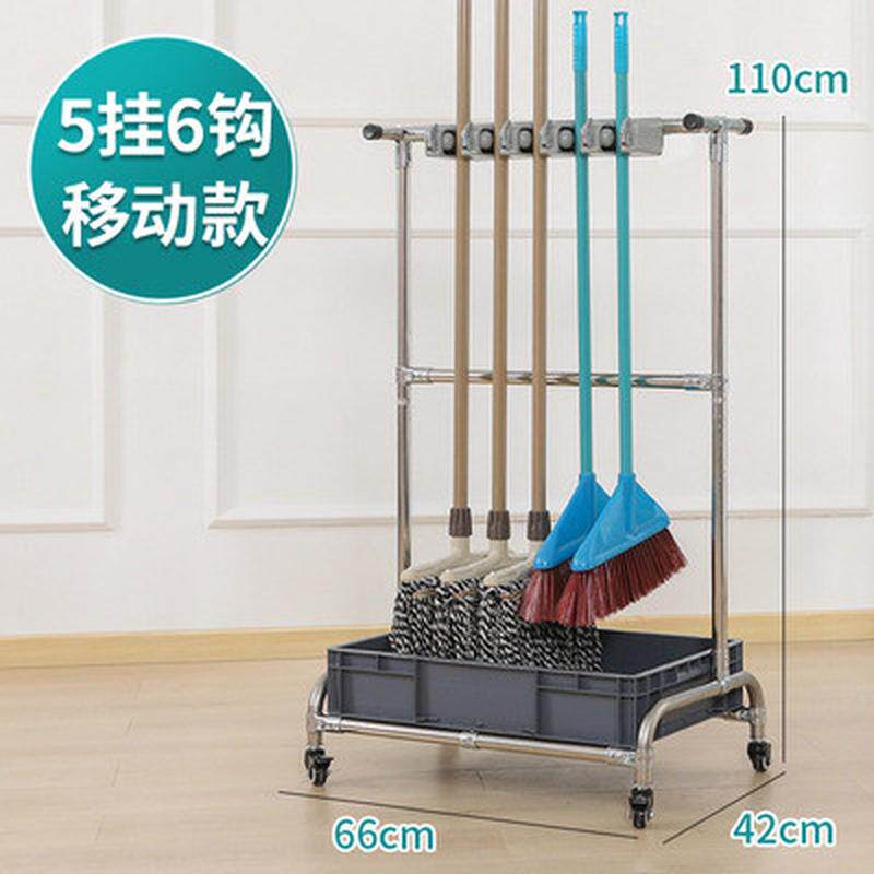 不锈钢拖把架可移动清洁扫把挂架置物架子墩布挂钩收纳落地式工具
