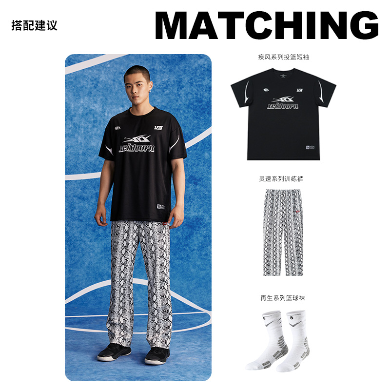 维动灵速花裤子九分男春夏薄款美式篮球训练运动长裤直筒休闲卫裤