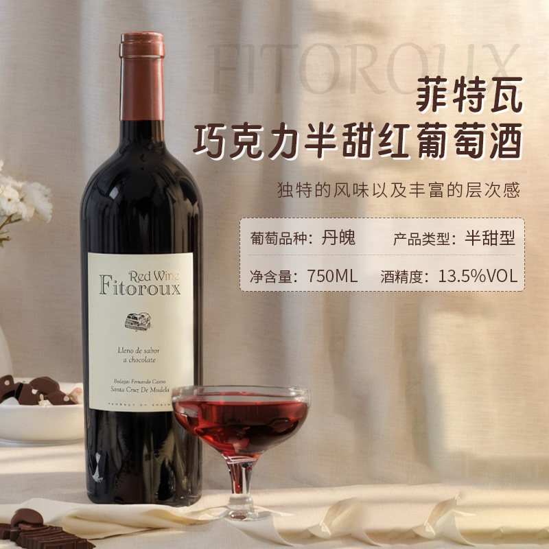 西班牙原瓶进口半甜红酒巧克力半甜红葡萄酒双支礼盒装微醺小甜酒
