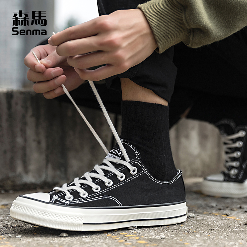 森马帆布鞋男韩版休闲鞋子夏季透气低帮黑色学生板鞋潮流韩版布鞋