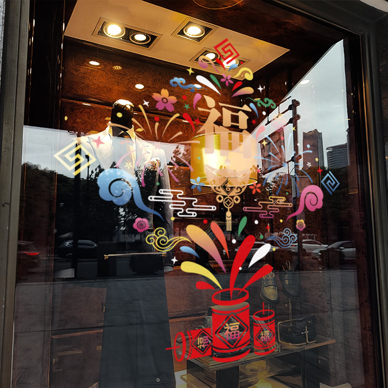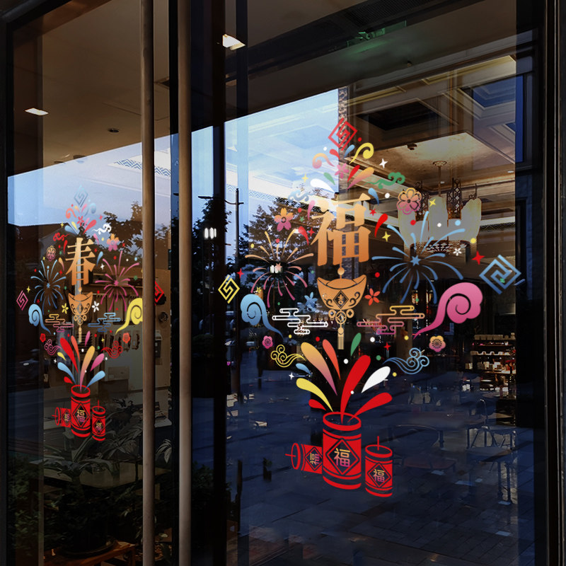静电贴玻璃门贴纸新年装饰布置