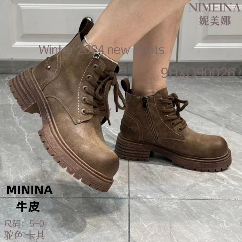 欧洲站纯皮马丁靴女上翘圆头擦色复古户外帅气大黄靴单靴广州短靴