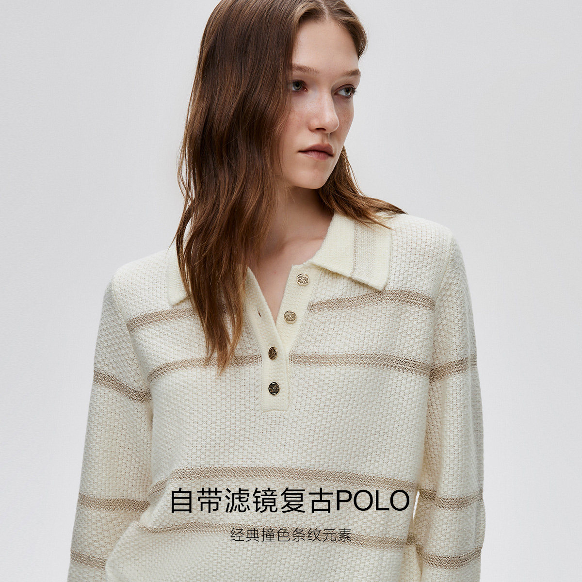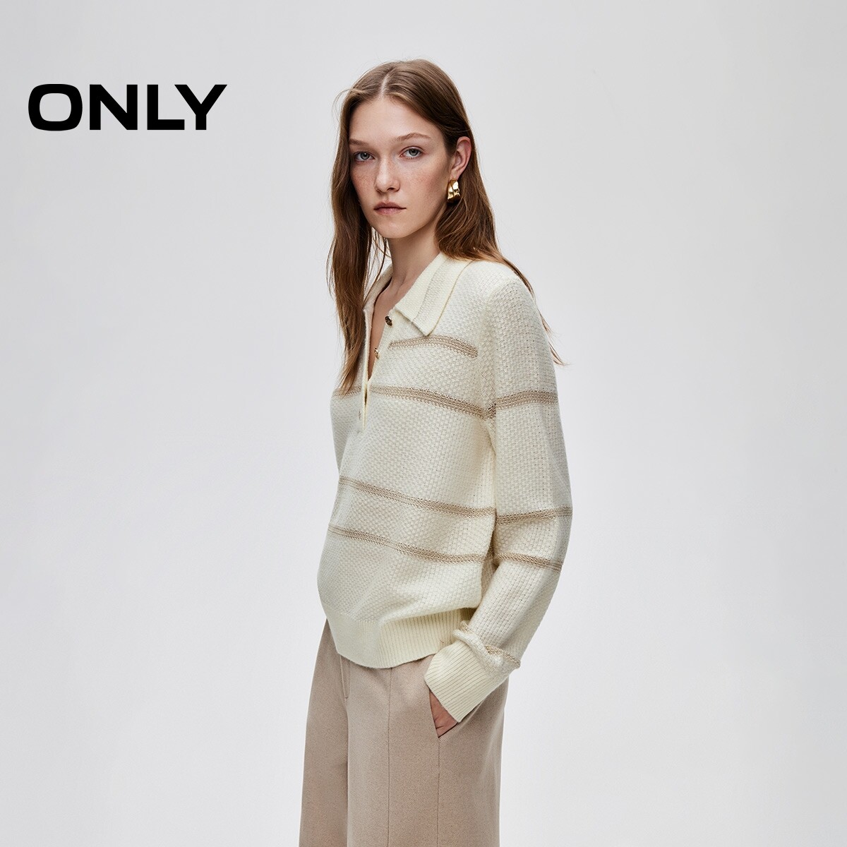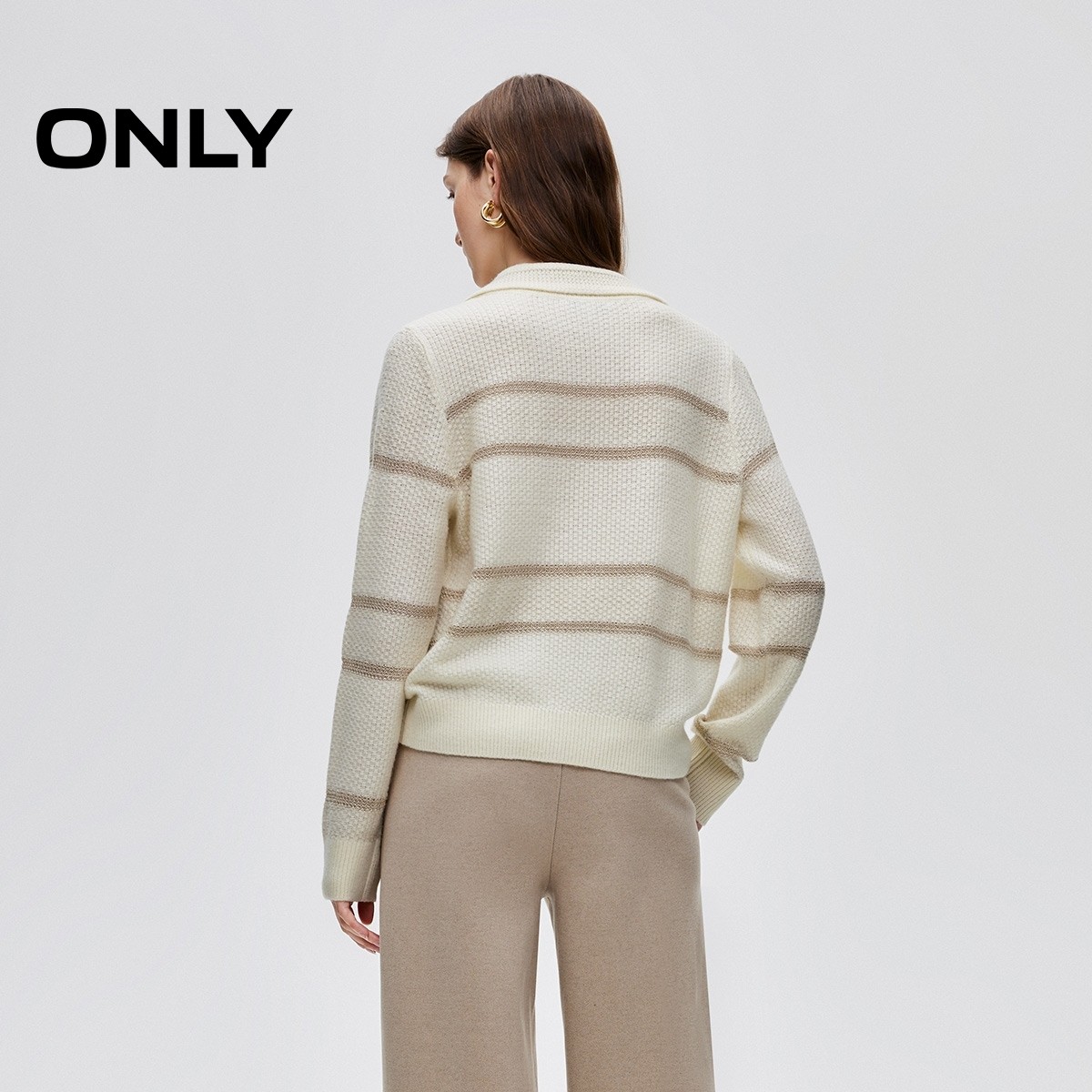 ONLY撞色条纹亮丝混纺针织衫