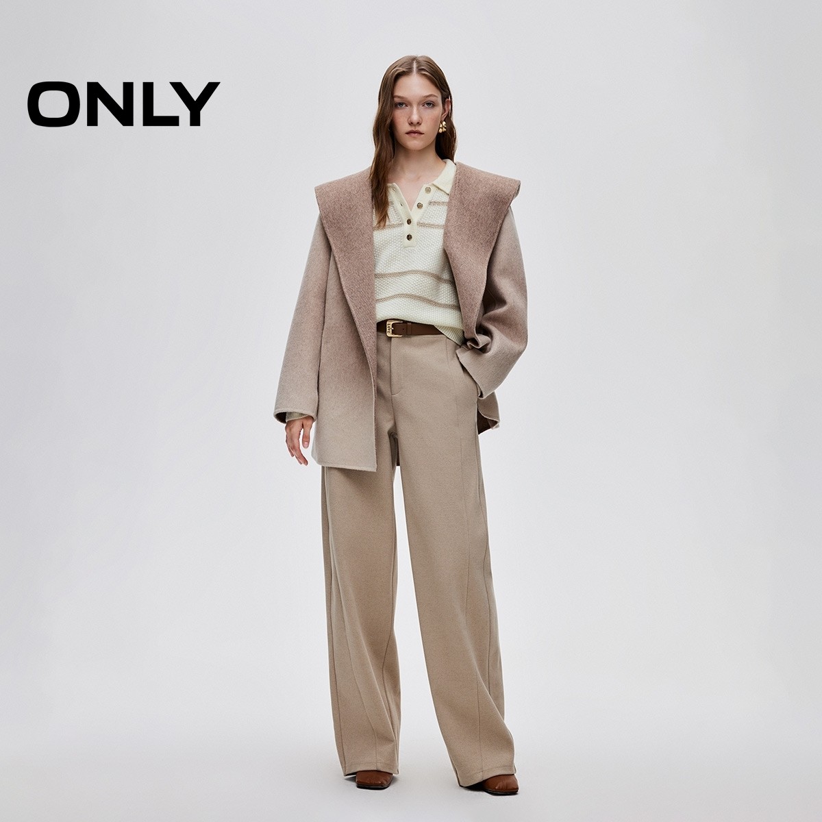 ONLY2025冬季新款舒适慵懒松弛感撞色条纹亮丝混纺毛衣针织衫女