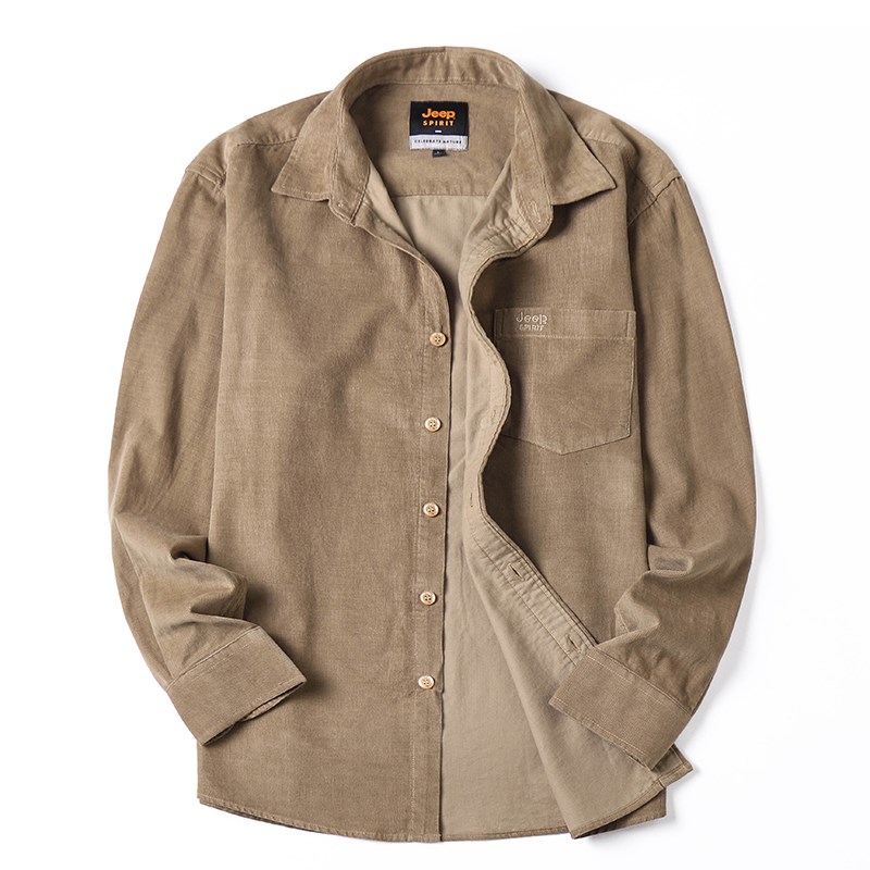 吉普吉普灯芯绒衬衫男长袖棉高级感男士春秋立领新款休闲衬衣外套