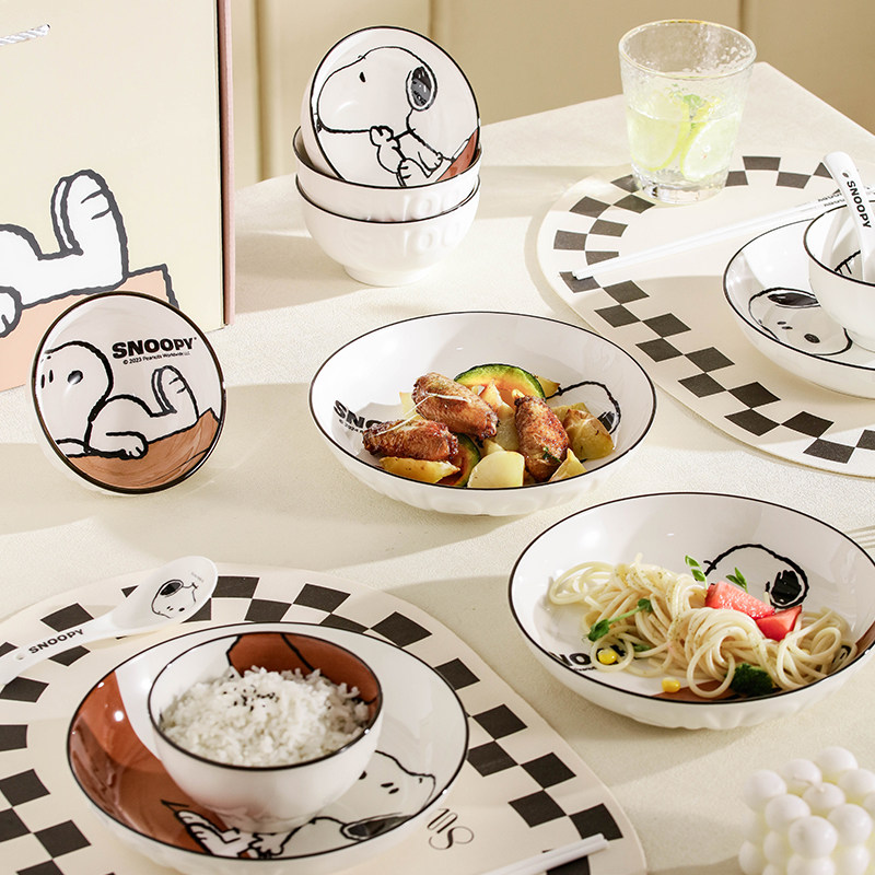 史努比釉下彩陶瓷餐具碗盘家用个人专用2025高颜值新款送礼盒套装