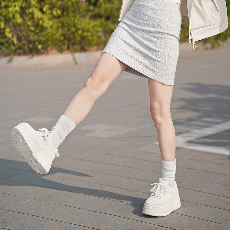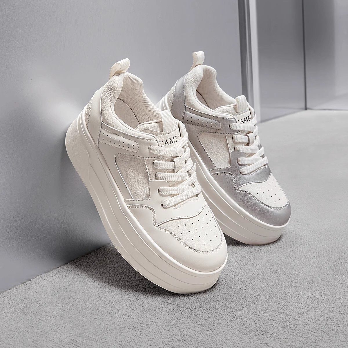 骆驼女鞋2025春季新款厚底板鞋女增高小白鞋时尚百搭通勤运动鞋