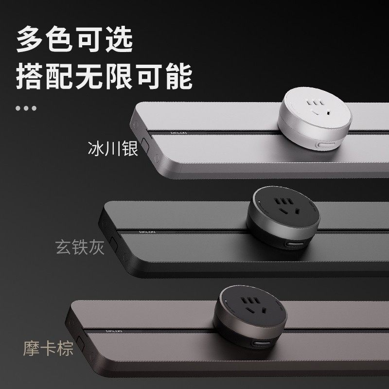 德力西超薄轨道插座中古黑胡桃木纹厨房餐边滑轨插座复古导轨插排