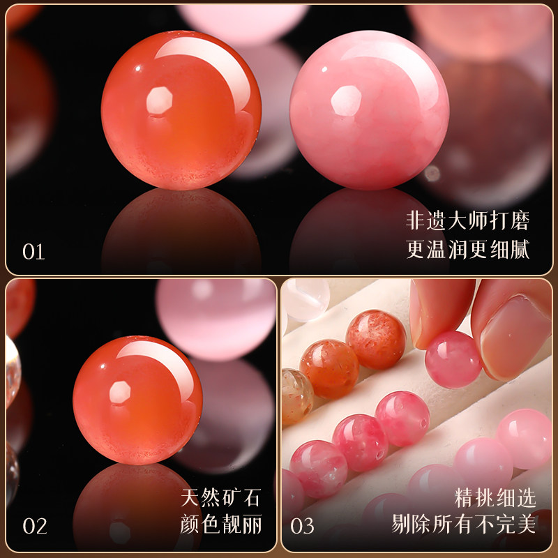 天然粉水晶散珠超七草莓晶diy配件串珠手串手链冰种玉髓单株