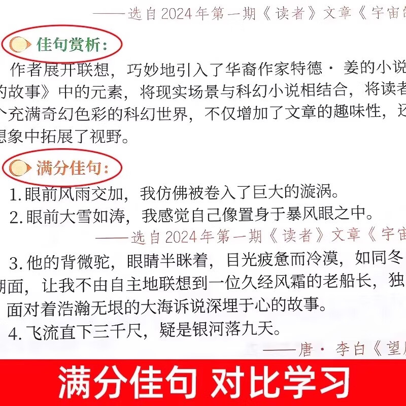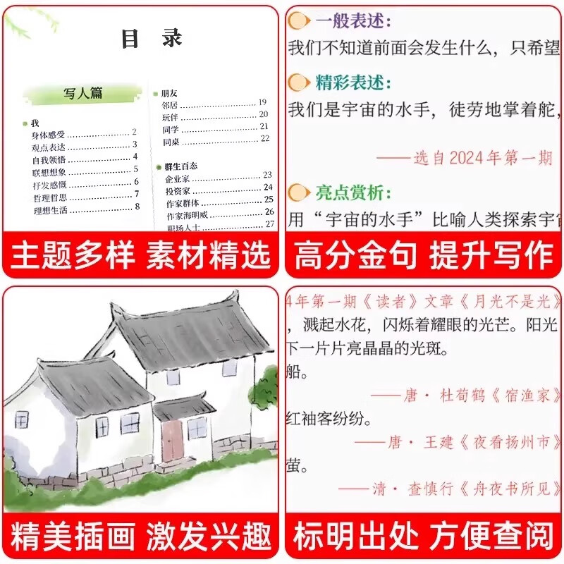 读者金句1000例 好词好句好段高分作文素材积累大全 中小学生语文写作技巧方法辅导书写景写物优美句子积累摘抄本作文金句一千例
