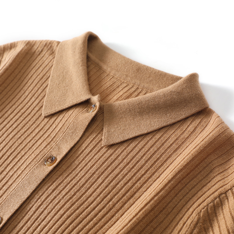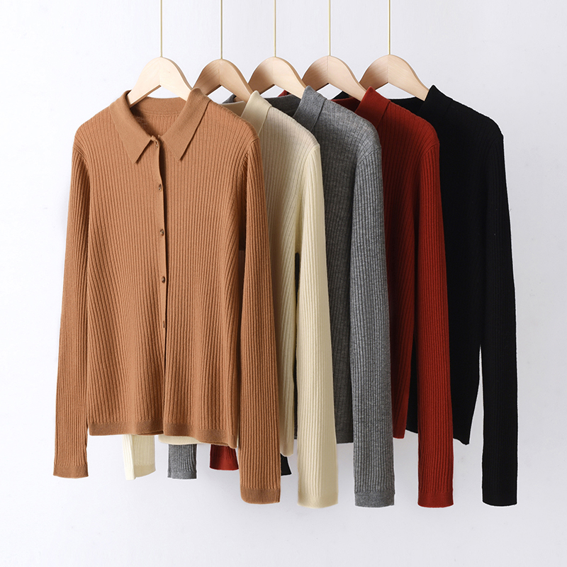 100%精纺纯羊毛针织衬衫女秋冬新款翻领修身毛衣外套Polo领打底衫