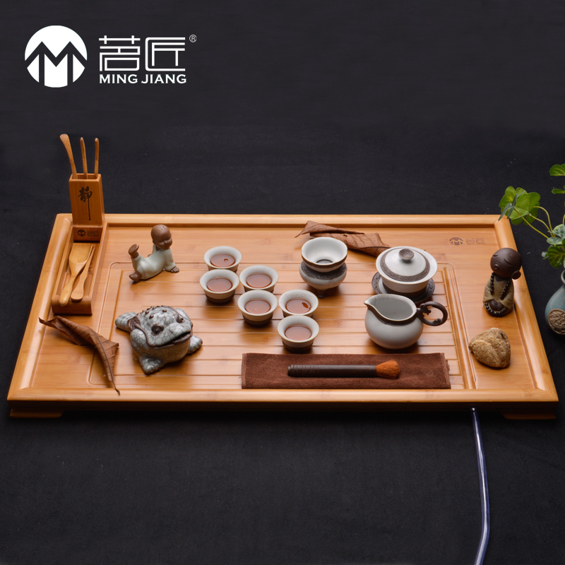 茗匠功夫茶具竹制茶n盘竹子茶海平板排水式茶台小号托盘特大号茶