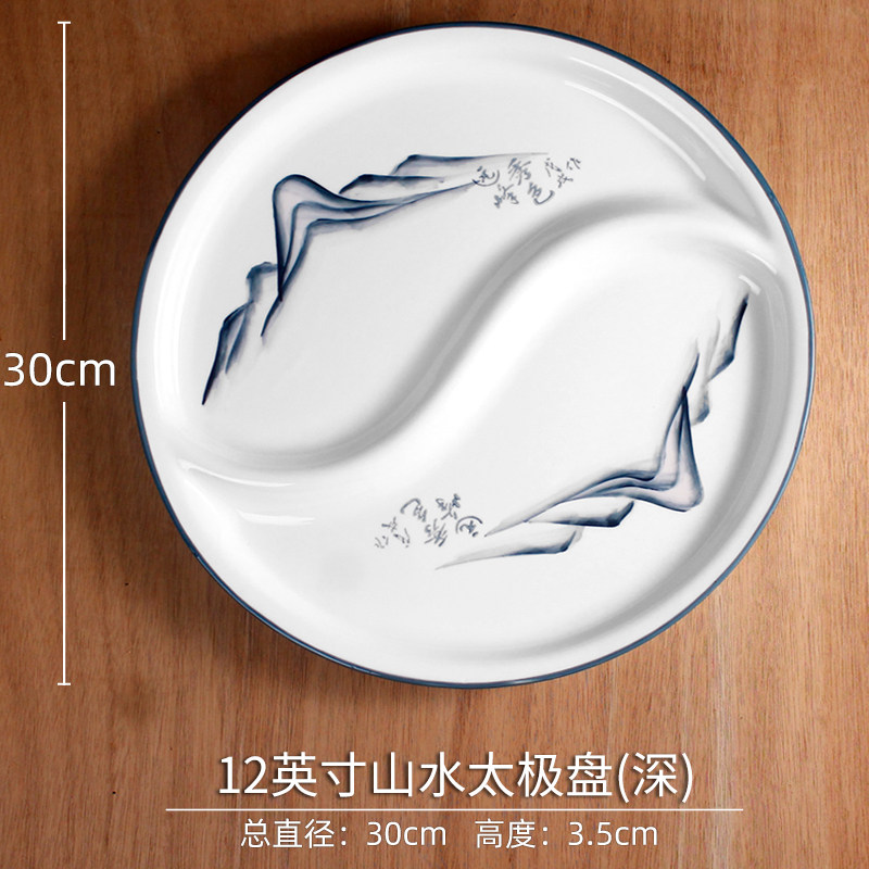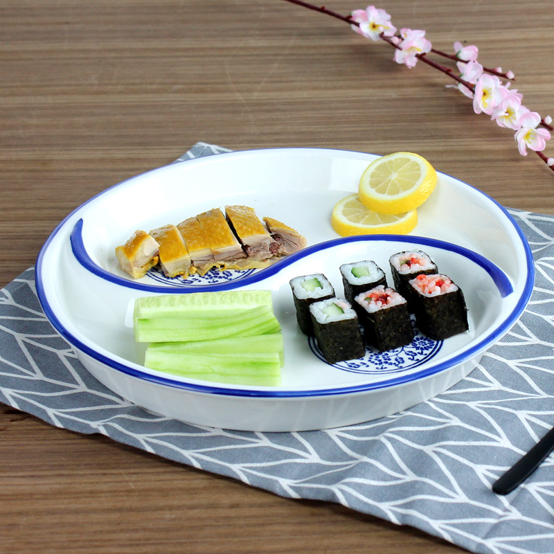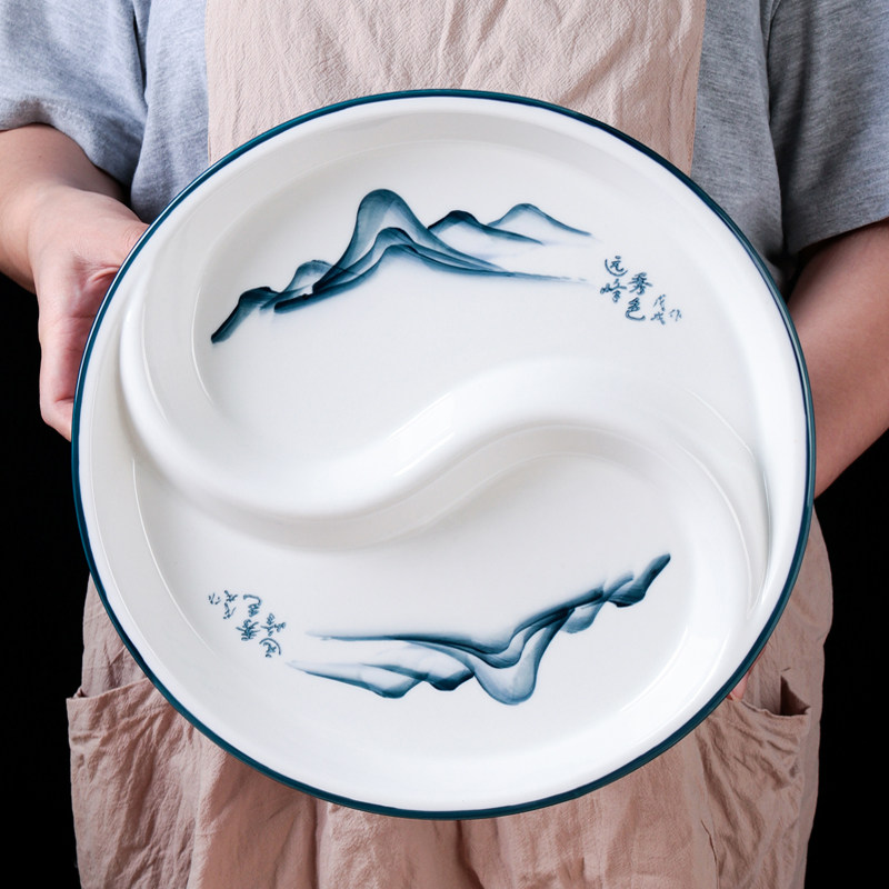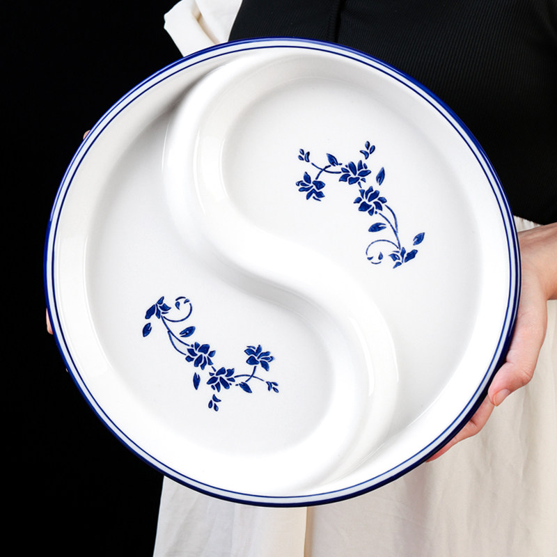 陶瓷一体太极盘青花拼盘圆形鸳鸯盘分餐盘家用盘水果盘分格圆盘子