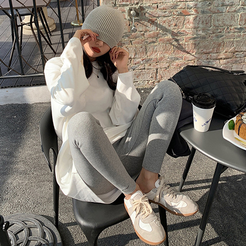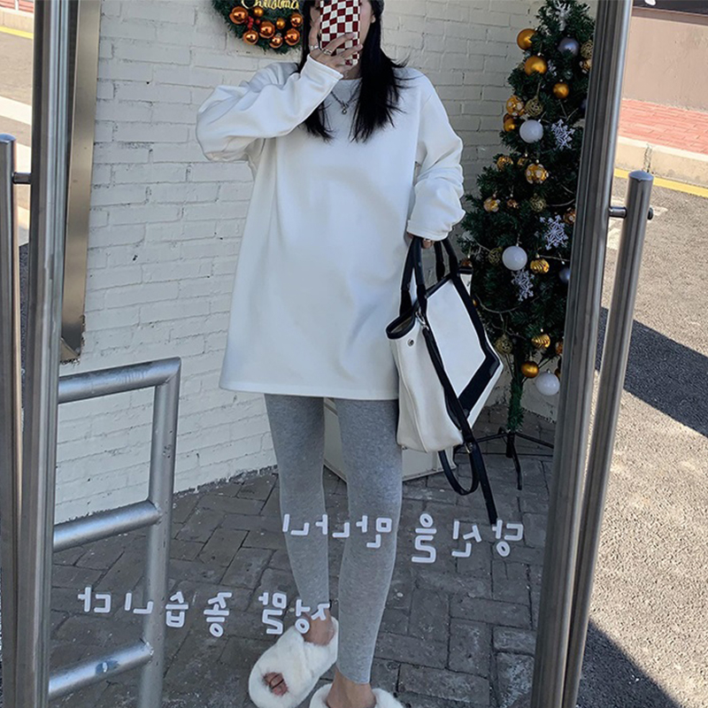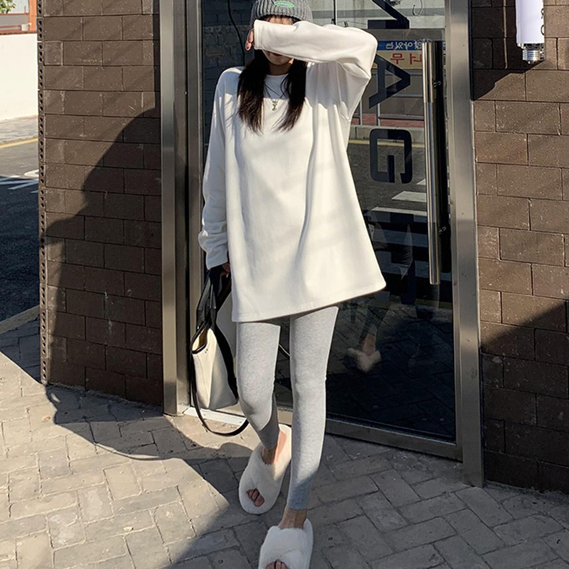 加绒加厚打底衫t恤女秋冬季新款宽松洋气白色叠穿中长款长袖上衣