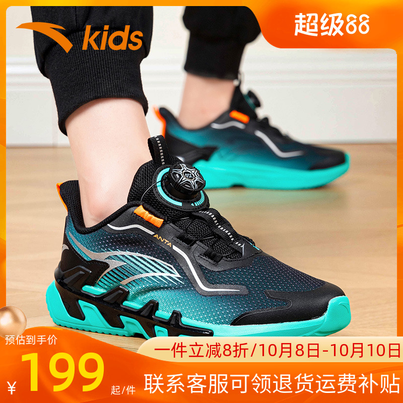 安踏儿童弓速跑鞋2025新款秋季网面透气男童鞋旋钮运动鞋子中大童