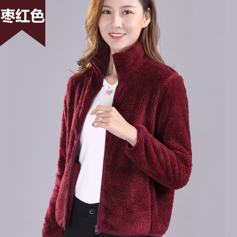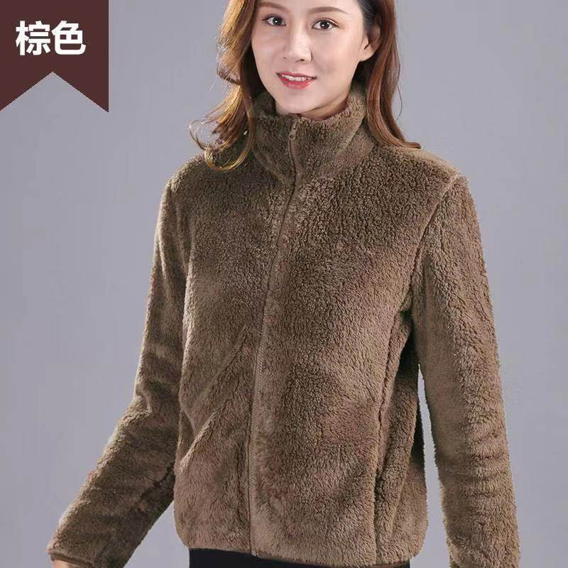 冬款珊瑚绒外套女款长毛毛抓绒衣开衫保暖卫衣摇粒绒外套加绒加厚