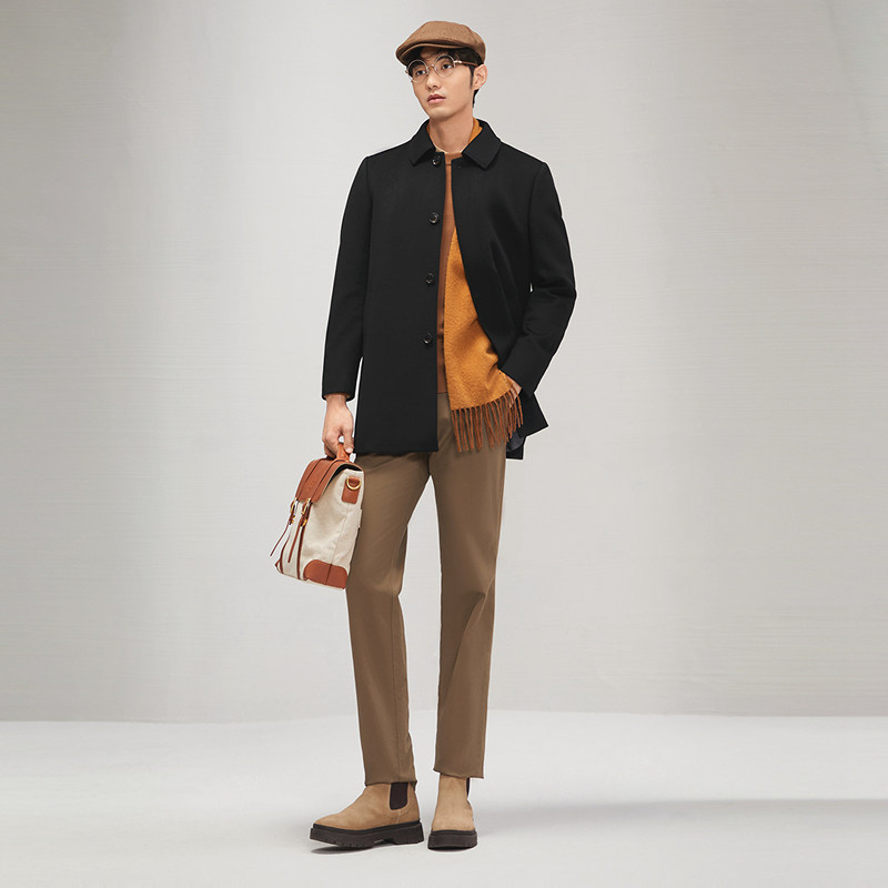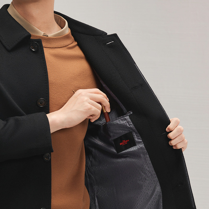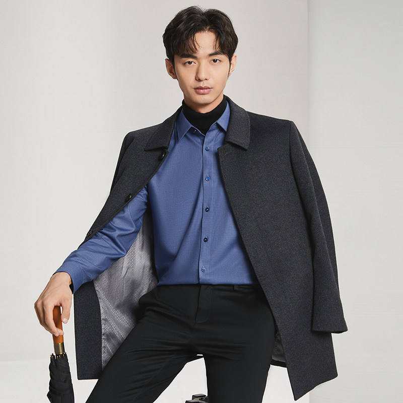 【纯羊毛】柒牌毛呢大衣男2025秋冬新品商务绅士厚款翻领保暖外套