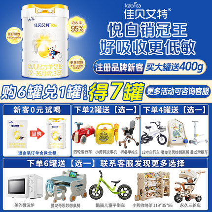 【新国标】佳贝艾特悦白三段婴幼儿羊奶粉3段800g低敏好吸收 正品