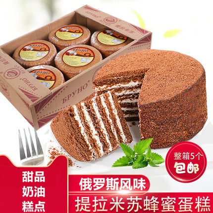 俄罗斯风味提拉米苏蜂蜜奶油千层蛋糕整箱5个包装早餐休闲零食品