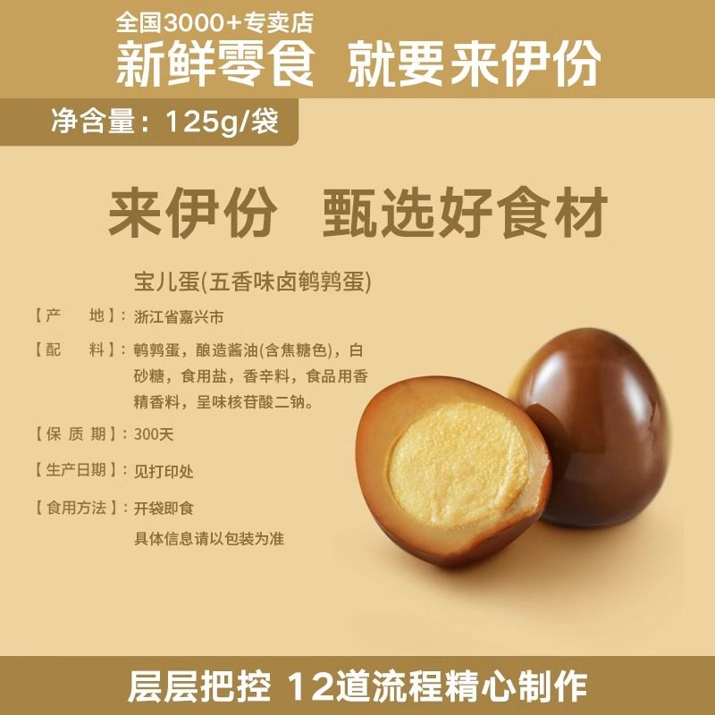 凑单来伊份卤蛋宝儿蛋125g五香味卤鹌鹑蛋卤香味零食小吃茶点早餐