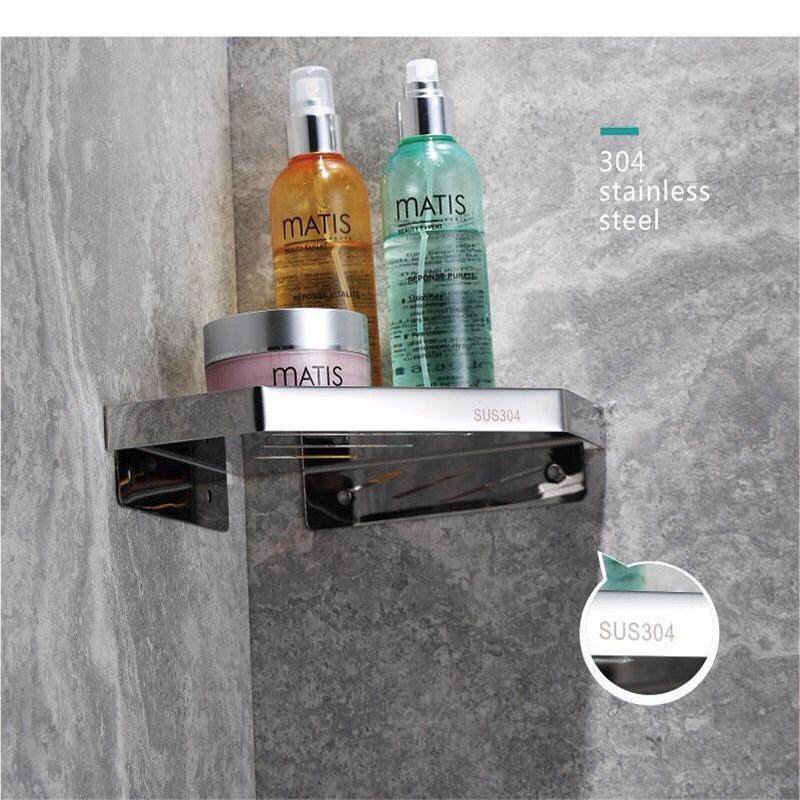 淋浴房浴室置物架卫生间304不锈钢小尺寸免打孔转角墙角三角架