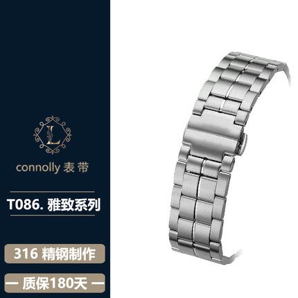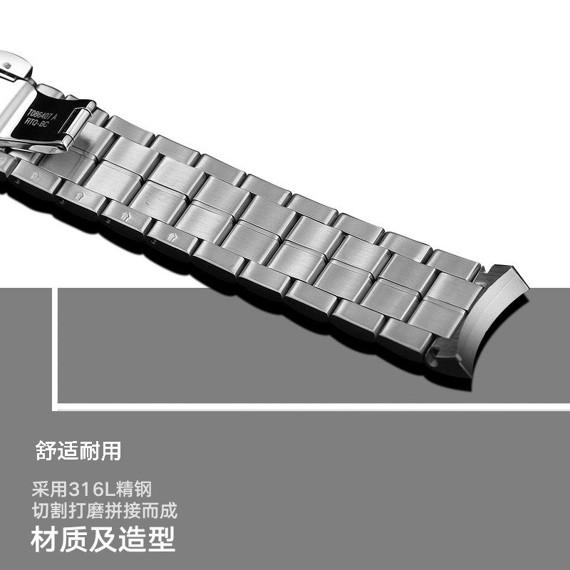 康诺利代用天梭1853表带钢带男精钢手表带豪致T086弧口表链男女