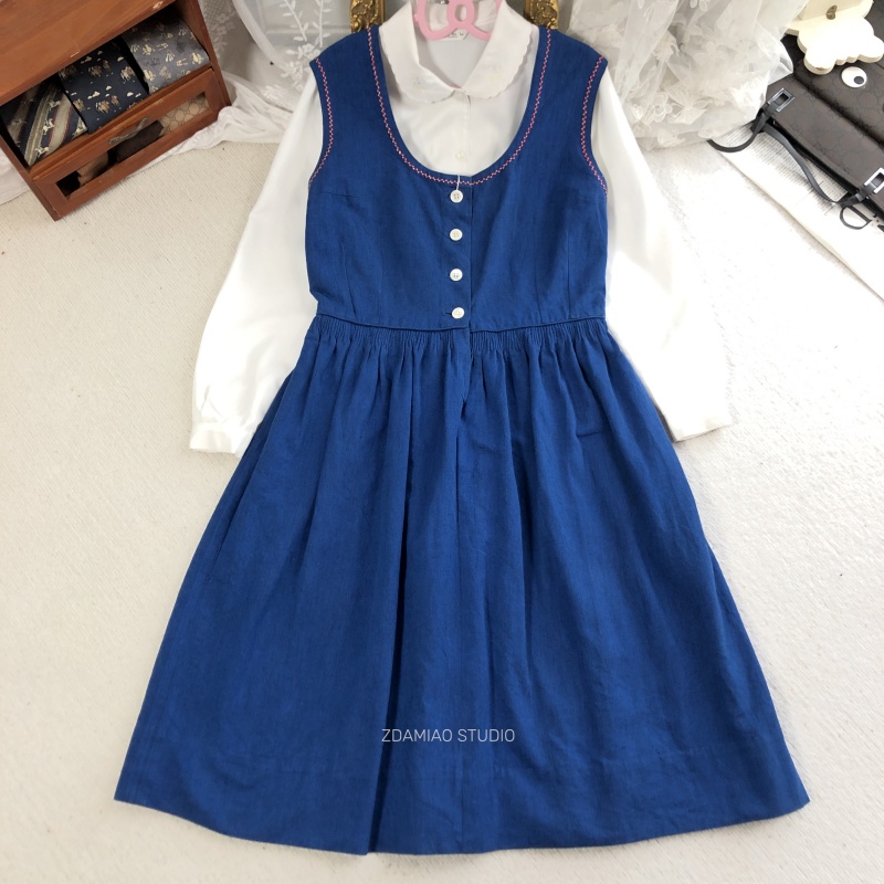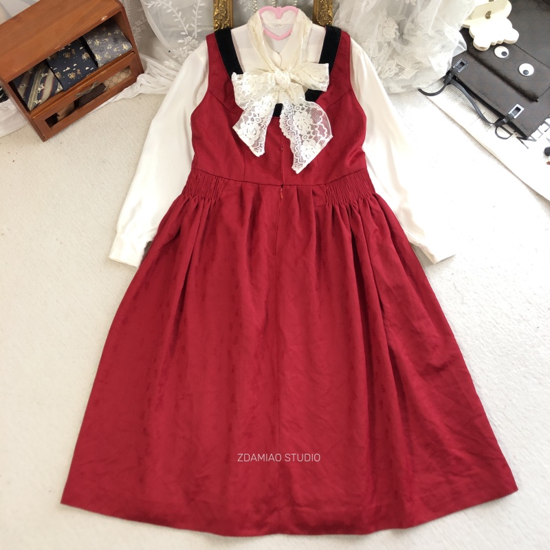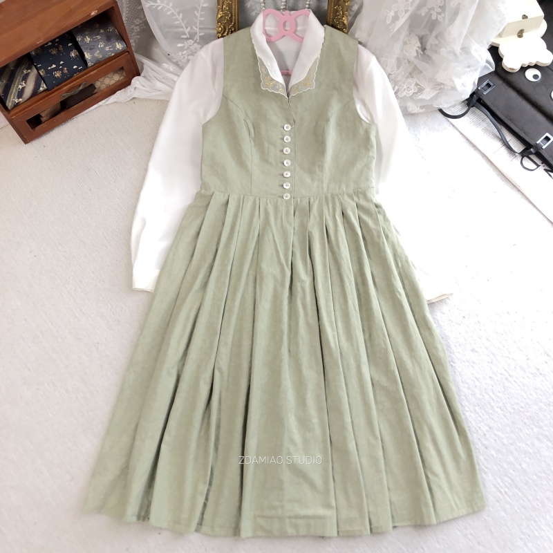 特惠海淘德国巴伐利亚收腰复古纯色提花大摆秋冬百搭连衣裙棉麻
