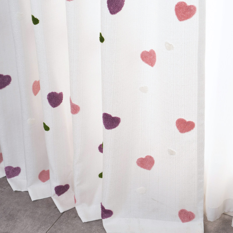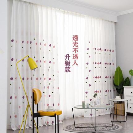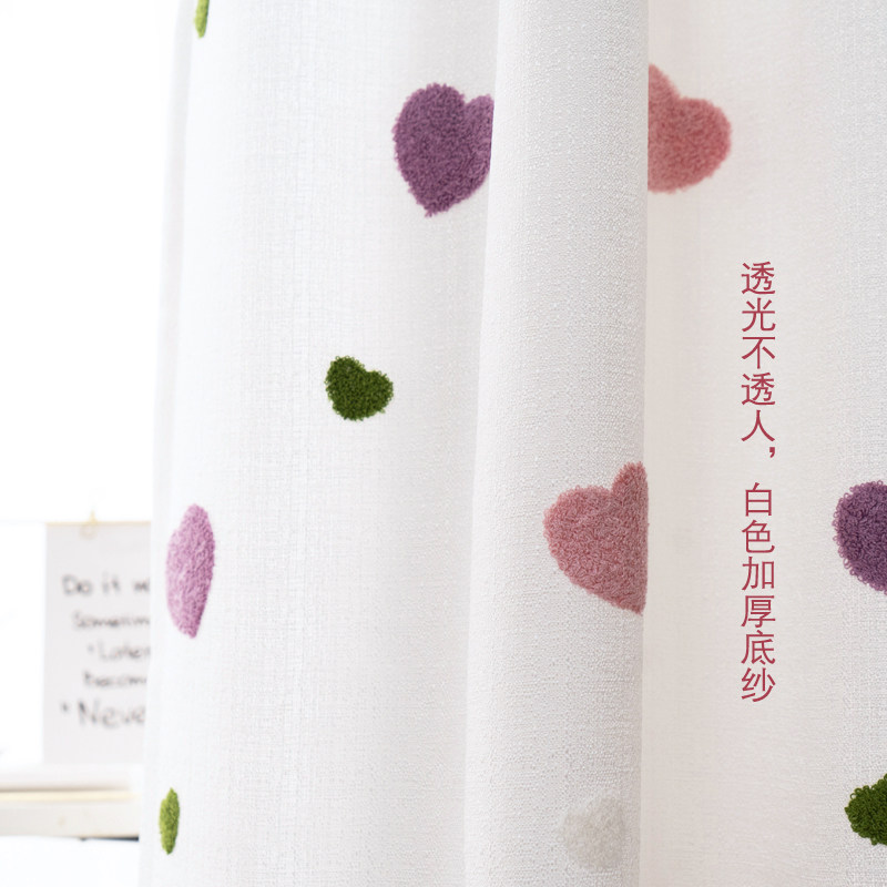 透光不透人纱爱心窗帘加厚纱帘绣花成品半遮光阳台客厅卧室隔断帘