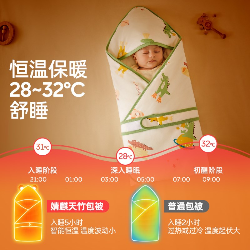 婧麒新生婴儿抱被初生纯棉恒温包被秋冬季天竹包单10月份宝宝产房
