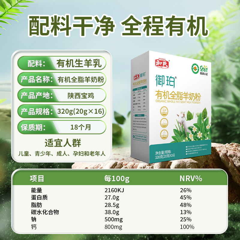 HERDS和氏御珀有机全脂羊奶粉天然A2奶源有机羊奶粉原生高钙320g