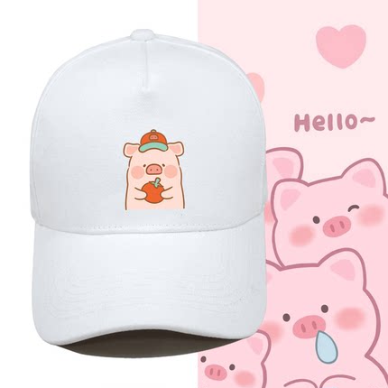 LULU猪卡通可爱休闲可定制鸭舌帽棒球帽粉红小猪印花周边男女情侣
