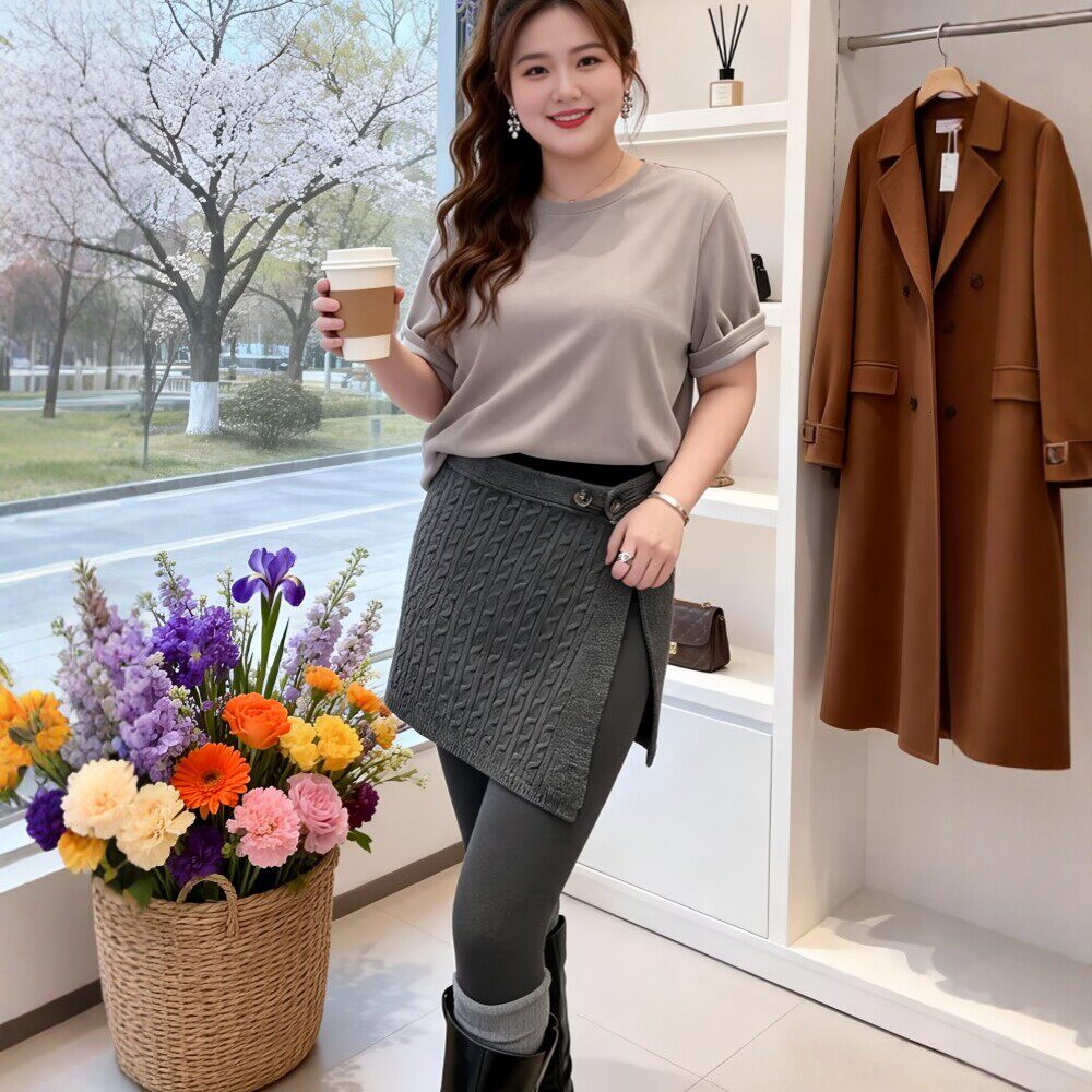 大码微胖mm韩系设计感灰色麻花针织屁帘女春季新款遮肉显瘦半身裙