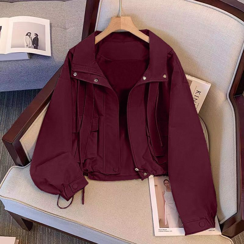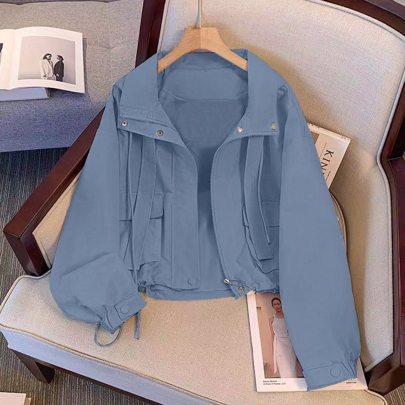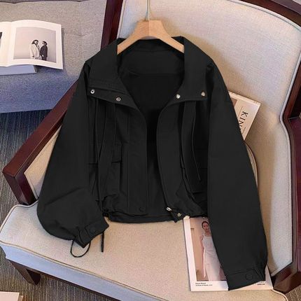 短款连帽外套女春秋2024新款春季超好看宽松休闲薄款工装夹克上衣