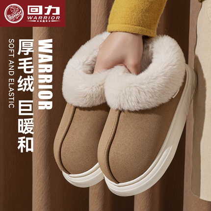 回力棉拖鞋女士2025新款家居室内加绒厚底保暖麂皮绒包跟棉鞋男款