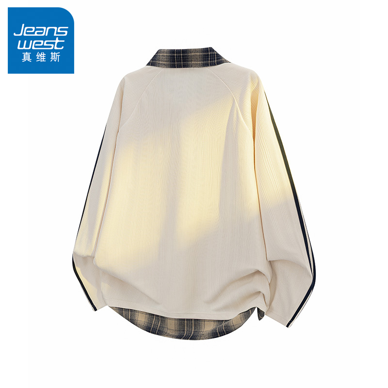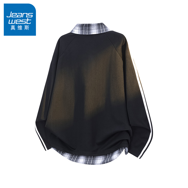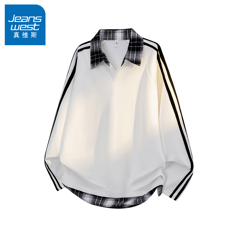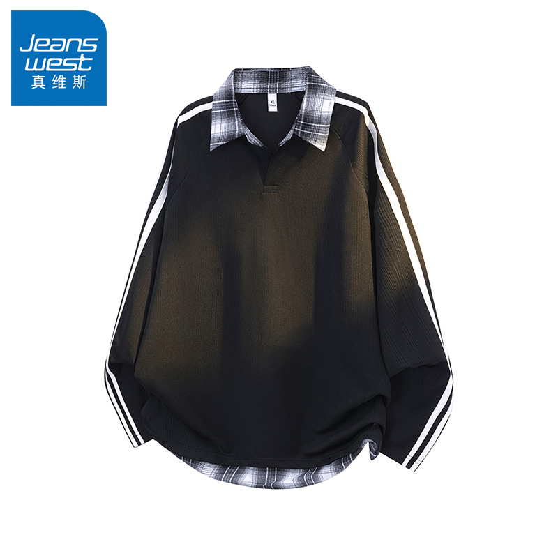 N5真维斯长袖T恤男2025秋季新款美式翻领假两件男装宽松春秋上衣