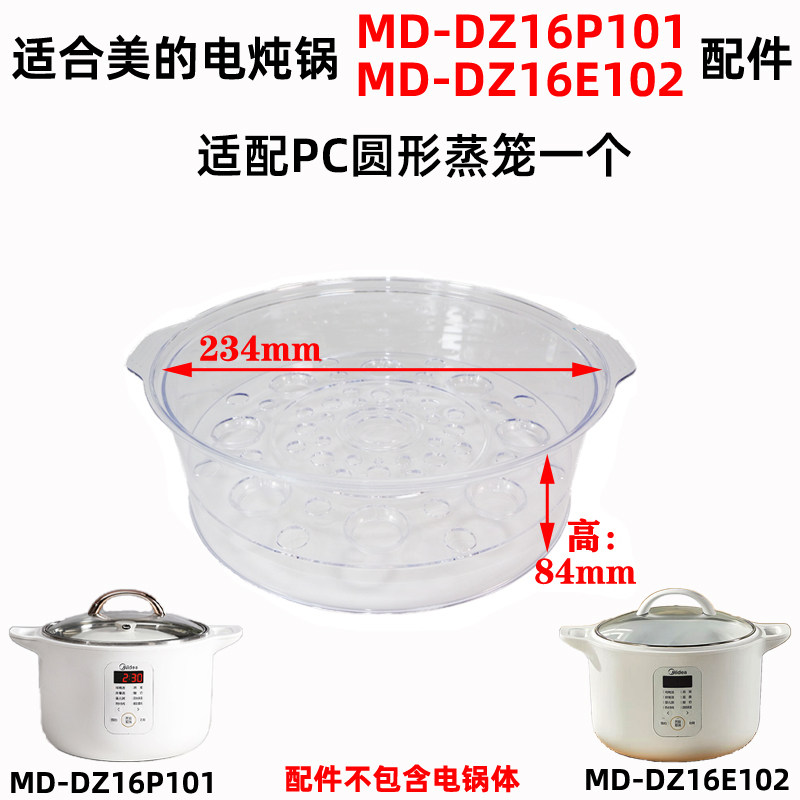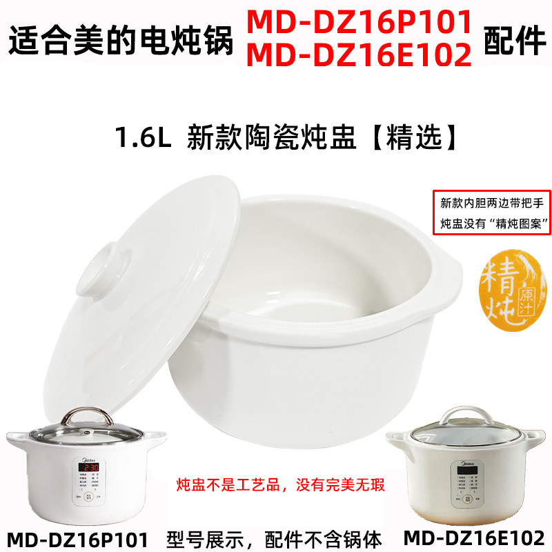 适用美的电炖锅MD-DZ16E102/P101蒸笼玻璃盖静音陶瓷炖盅内胆配件