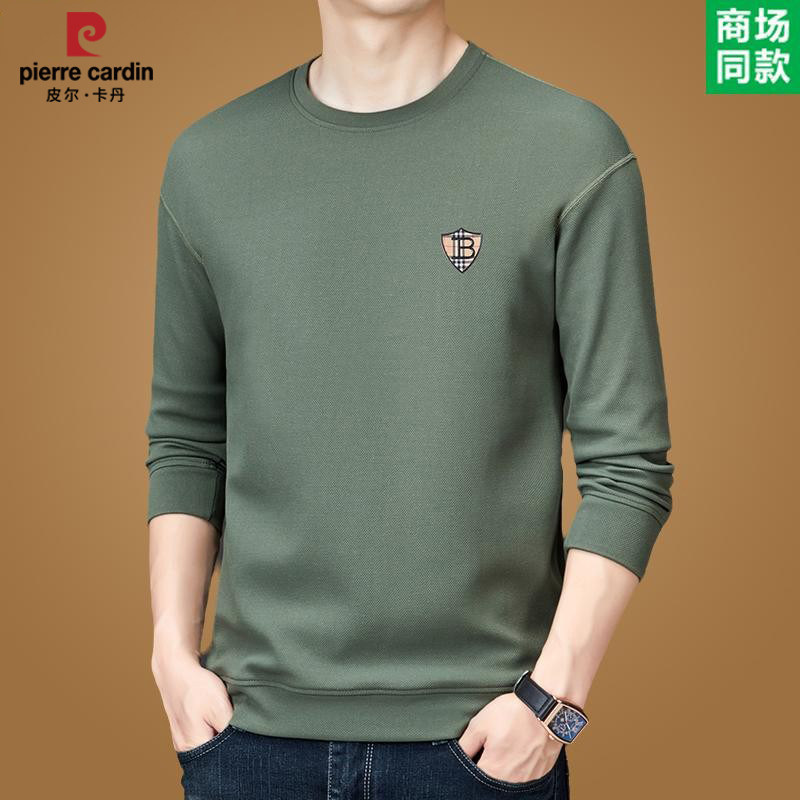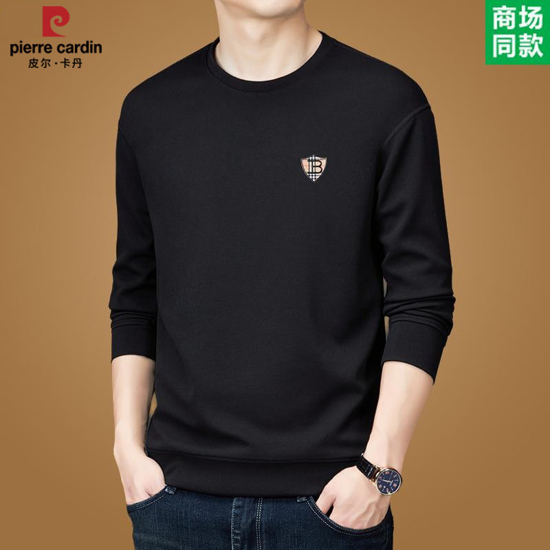 皮尔卡丹长袖加绒加厚卫衣男秋冬新款休闲宽松纯棉免烫t恤打底衫