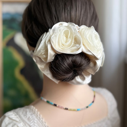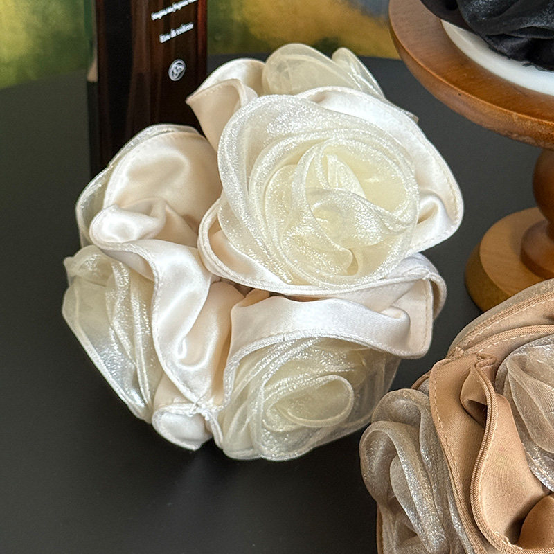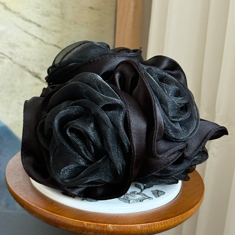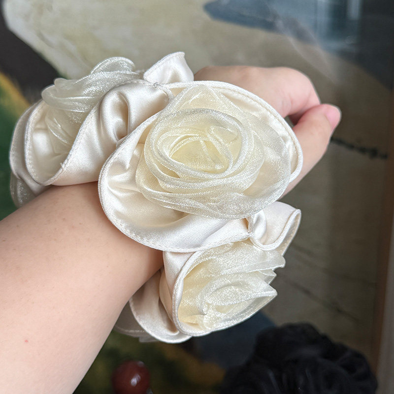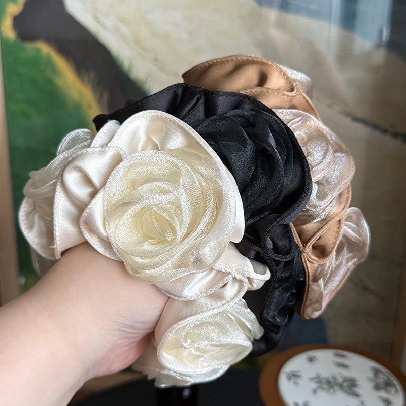【氛围美人】法式缎面玫瑰大肠发圈网红高级扎头绳高弹力黑色奶白